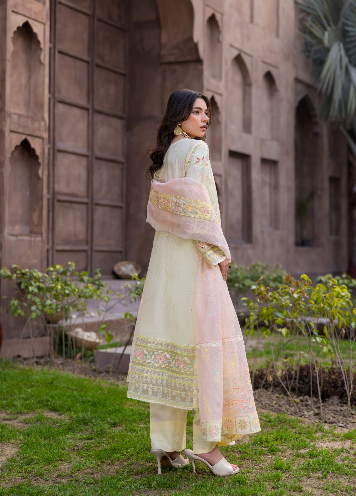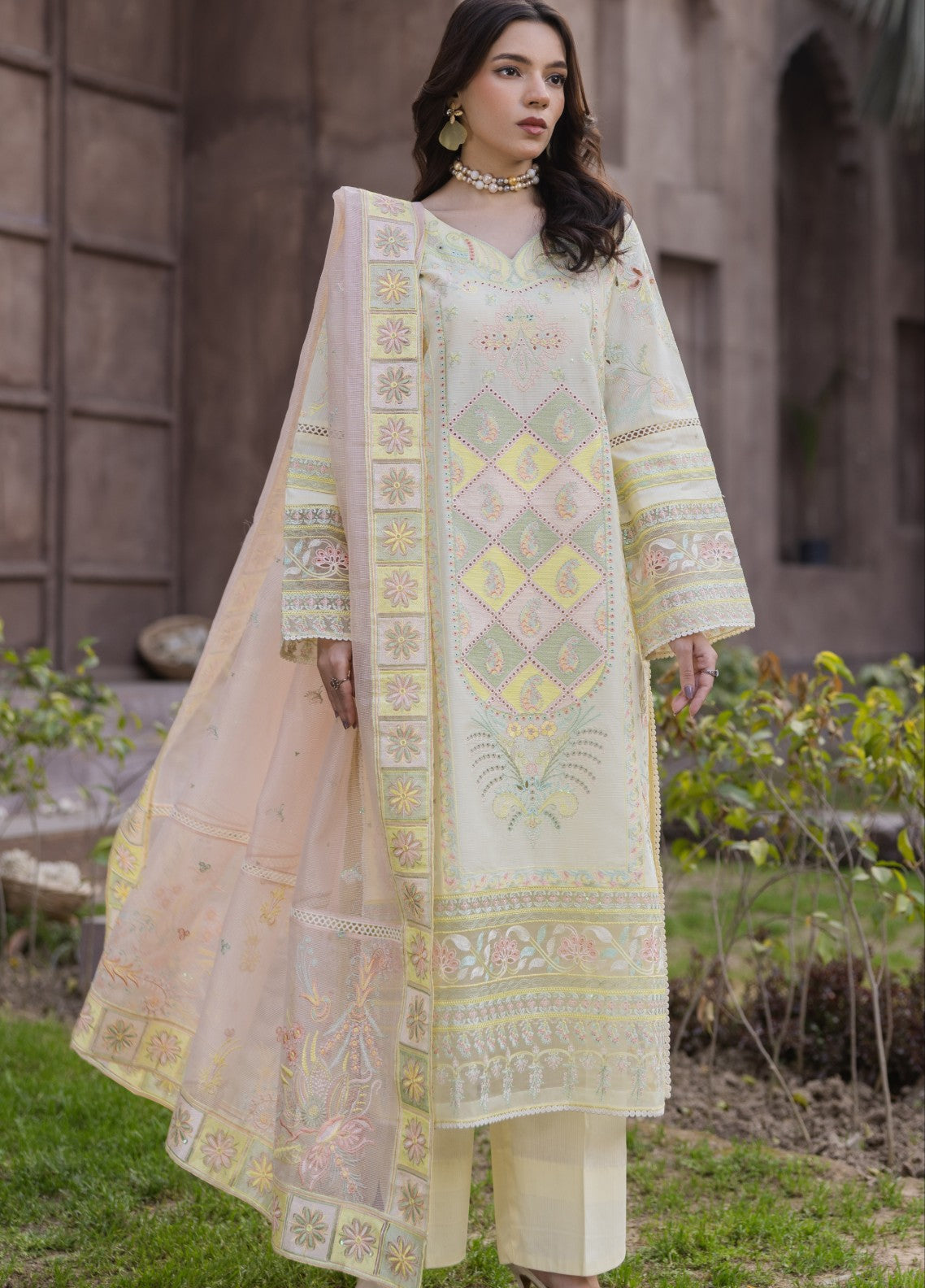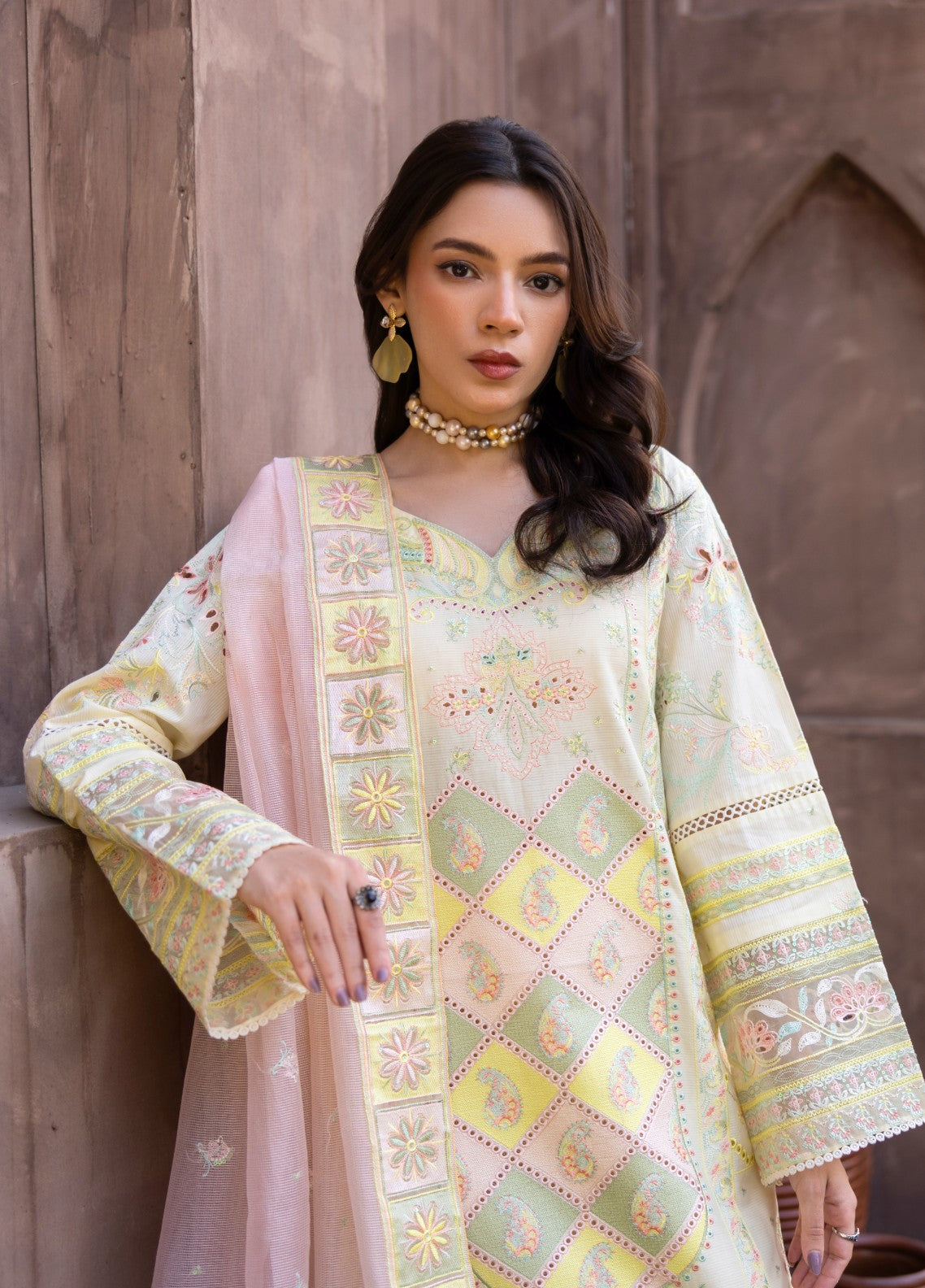 Embroidered Lawn Dress With Net Dupatta & Trousers