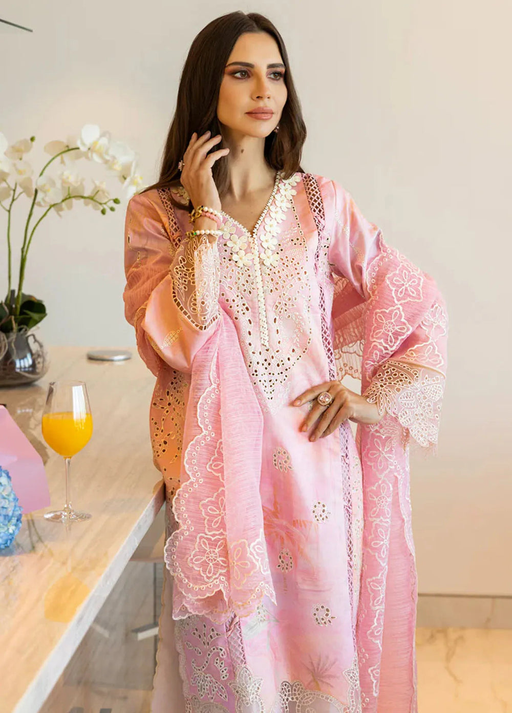 Zoha by Ansab Jahangir Embroidered Lawn Suit Unstitched 3 Piece ANJ25Z D-08 Pink Lady Applet - Summer Collection
