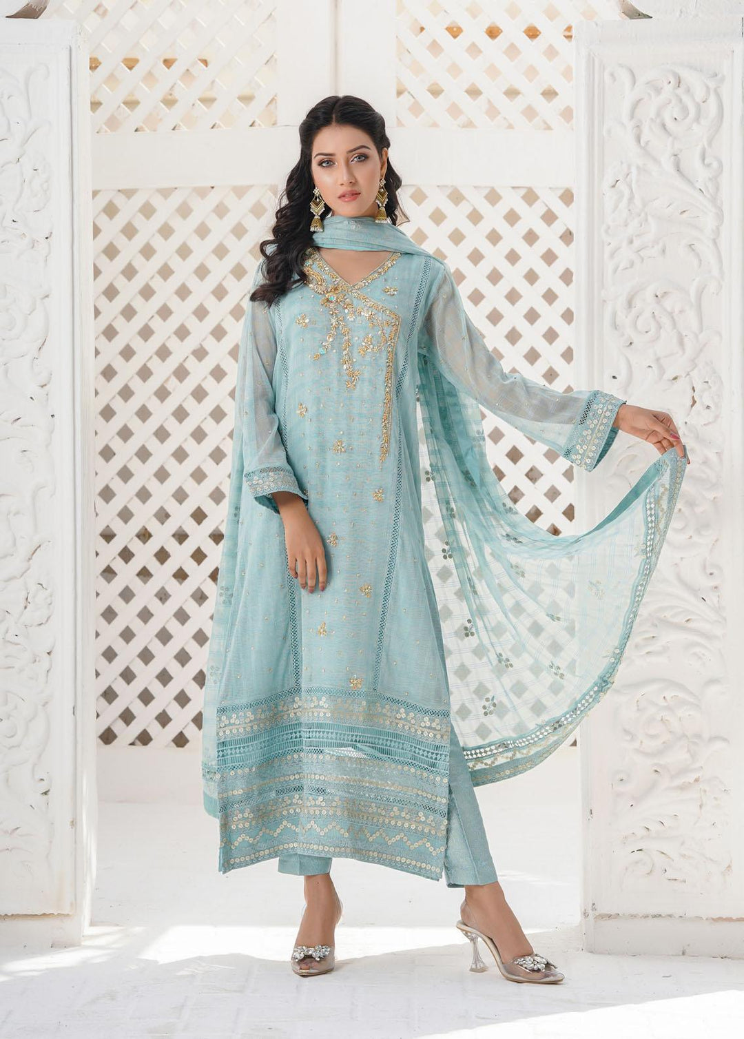 Azure Luxury Pret Chiffon Kaftan Aqua Stroke ASVG338