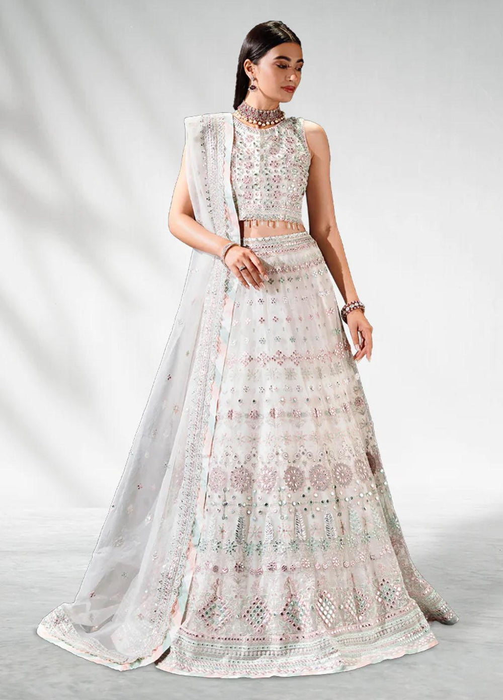 The perfect burst of pastels for all festive occasions. This silhouette is meticulously embroidered using an array of 4 complementing pastel colors and panni work. The choli and lehenga features a unique design on each panel in order to create a depth and variety in design. To add to the uniqueness it has a flared lehenga with beautiful floral and geometrical pattern which gives the entire outfit a trendy element. The net dupatta drapes beautifully carrying a colorful embellishment and chatapatti borders as well as dense spray of motifs. This look merges tradition with modernity using Malook signature ethos.Includes Choli Lehenga and Dupatta.