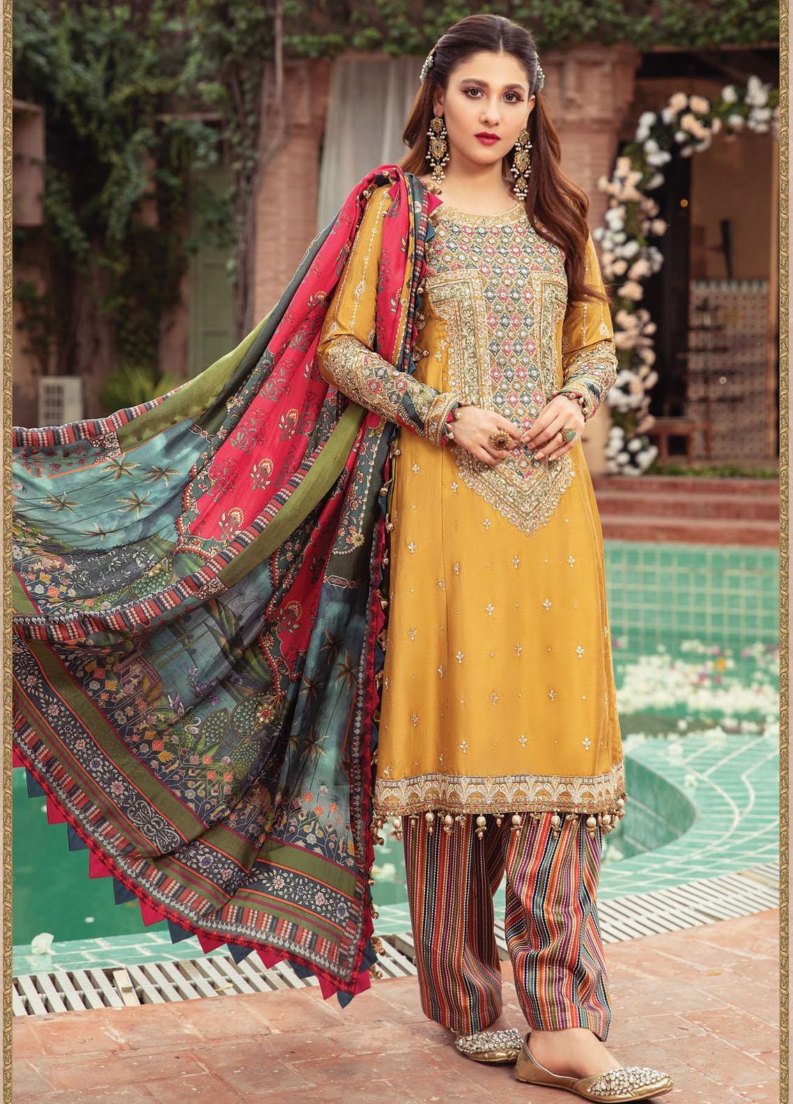 Maria B Embroidered Cotton Satin Suits Unstitched 3 Piece MB21SU D-06 - Festive Collection