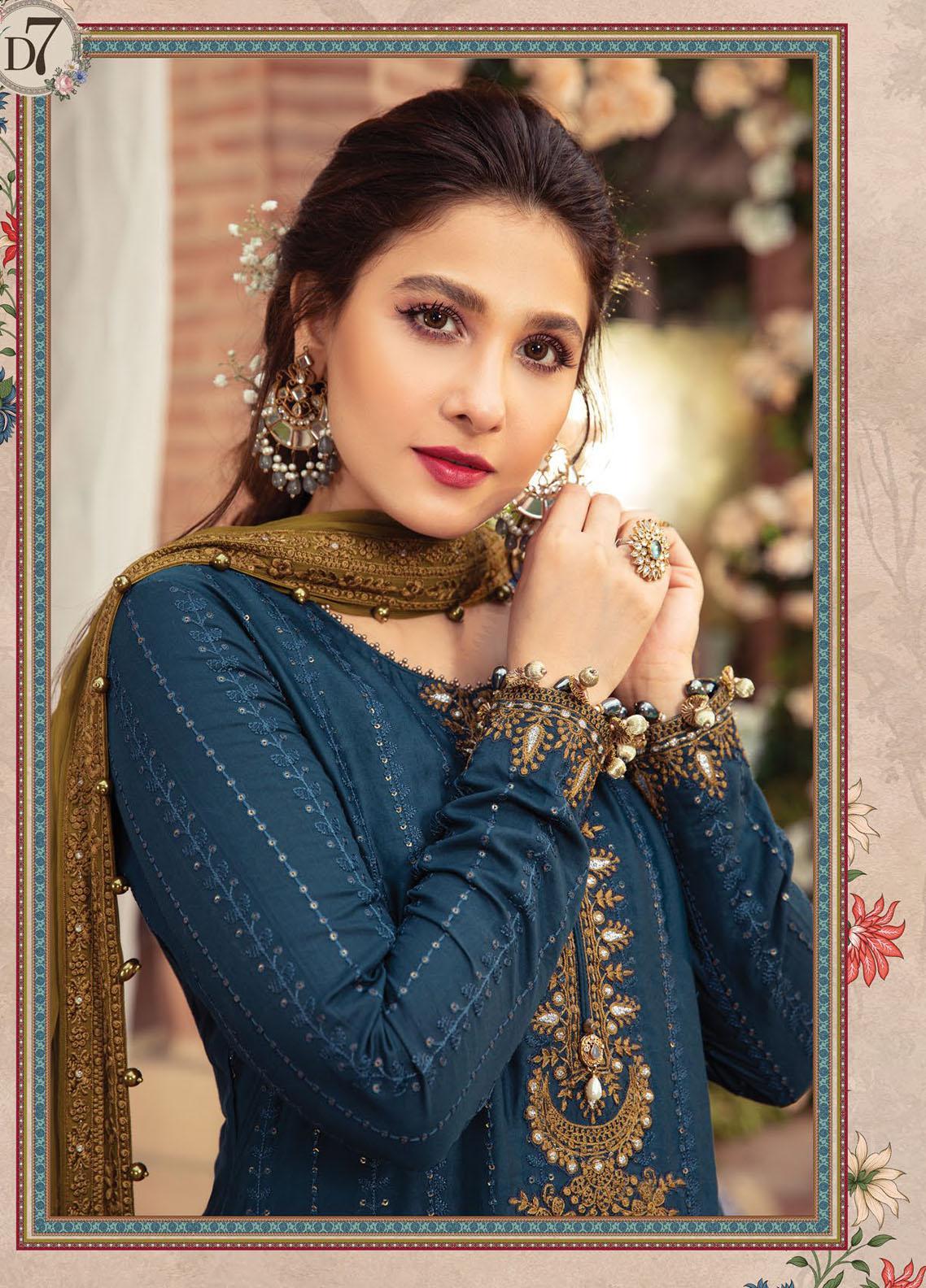Maria B Embroidered Cotton Satin Suits Unstitched 3 Piece MB21SU D-07 - Festive Collection