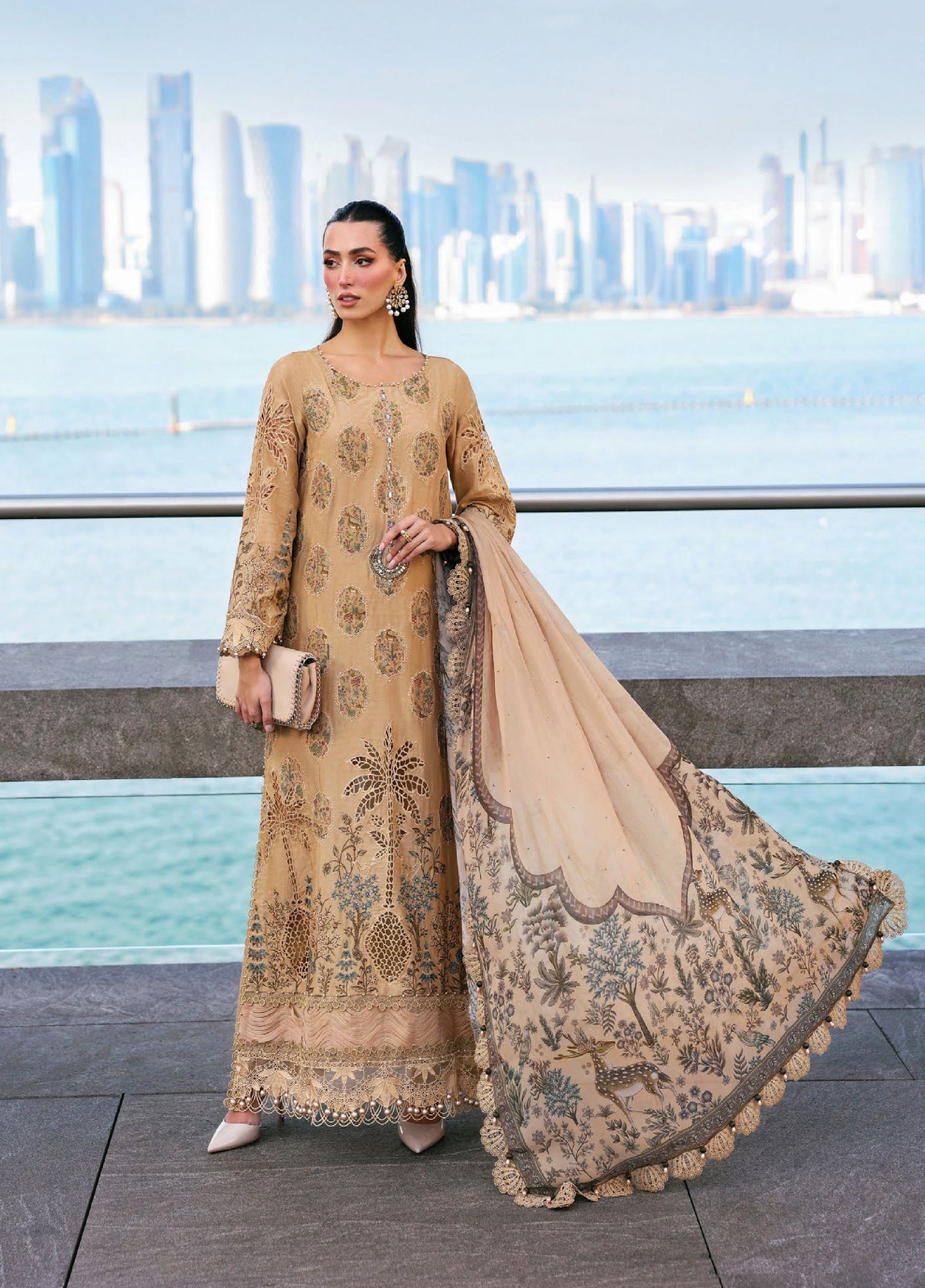 • Embroidered Jacquard Lawn Side Panels L+R with Printed Lawn Applique