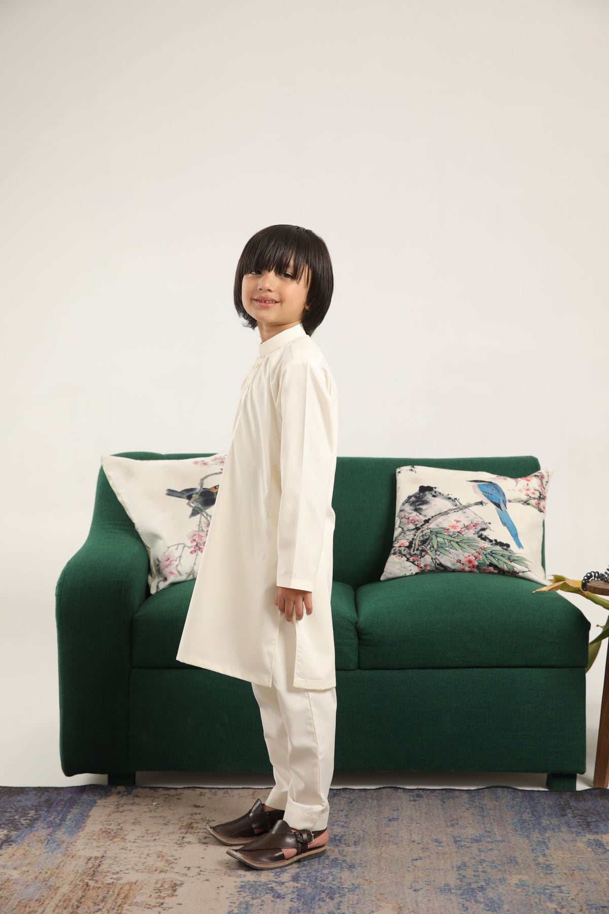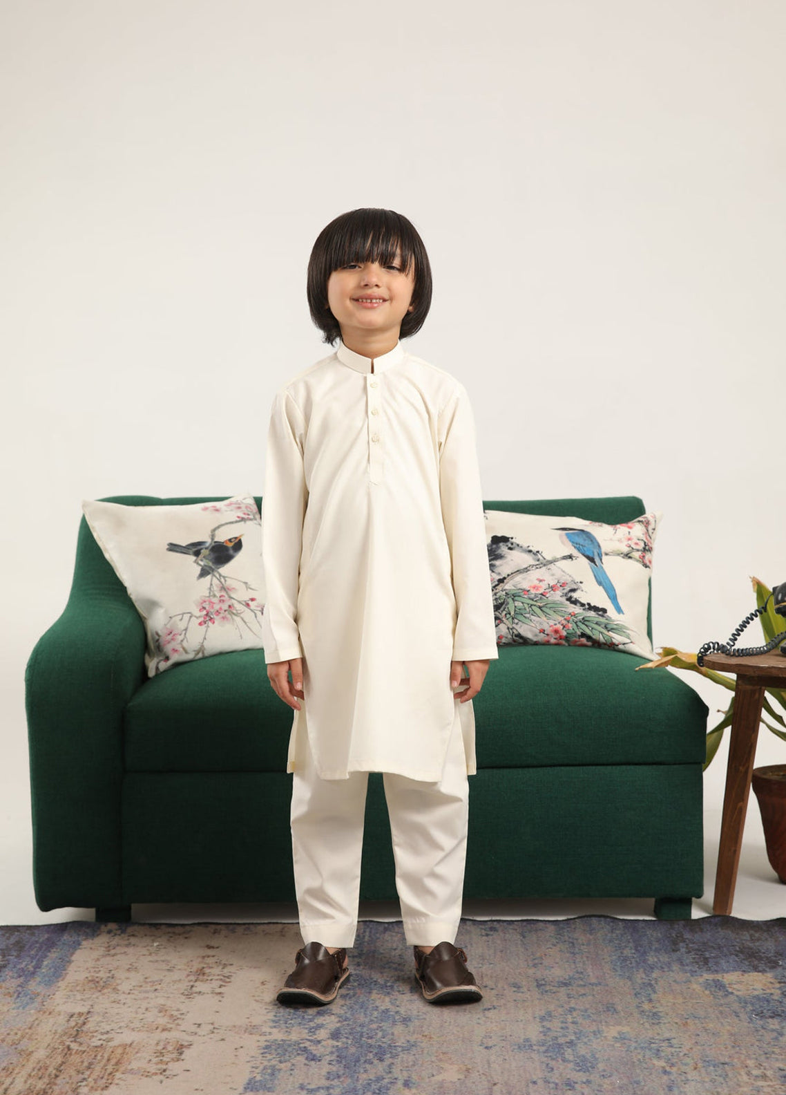 Muraqsh Ready To Wear Solids Boys Bosky White Blended Kurta Trouser MUR-BWKT - Summer Collection