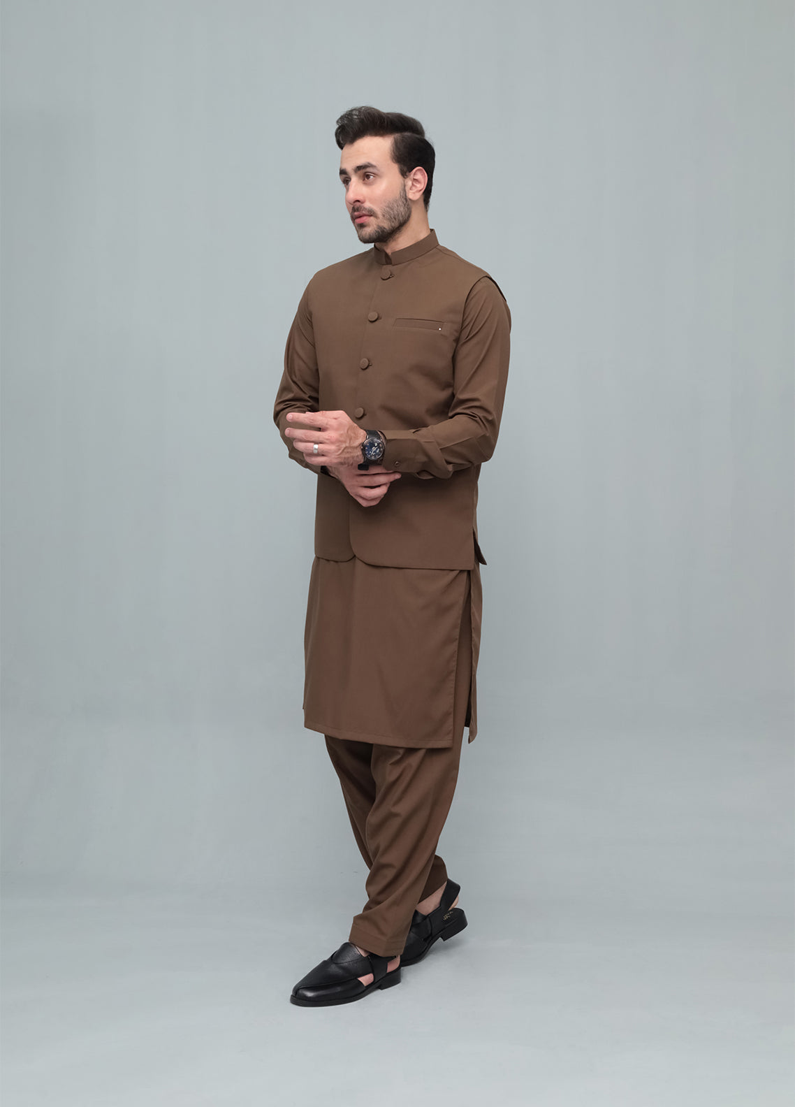 Enhance Your Style With The Coffee Brown With Blended Waistcoat - Round Cut & Matching Fabric Buttons - Men β A timeless blend of tradition and modern elegance. Featuring a round cut waistcoat, this ensemble is perfect for formal events and cultural occasions.