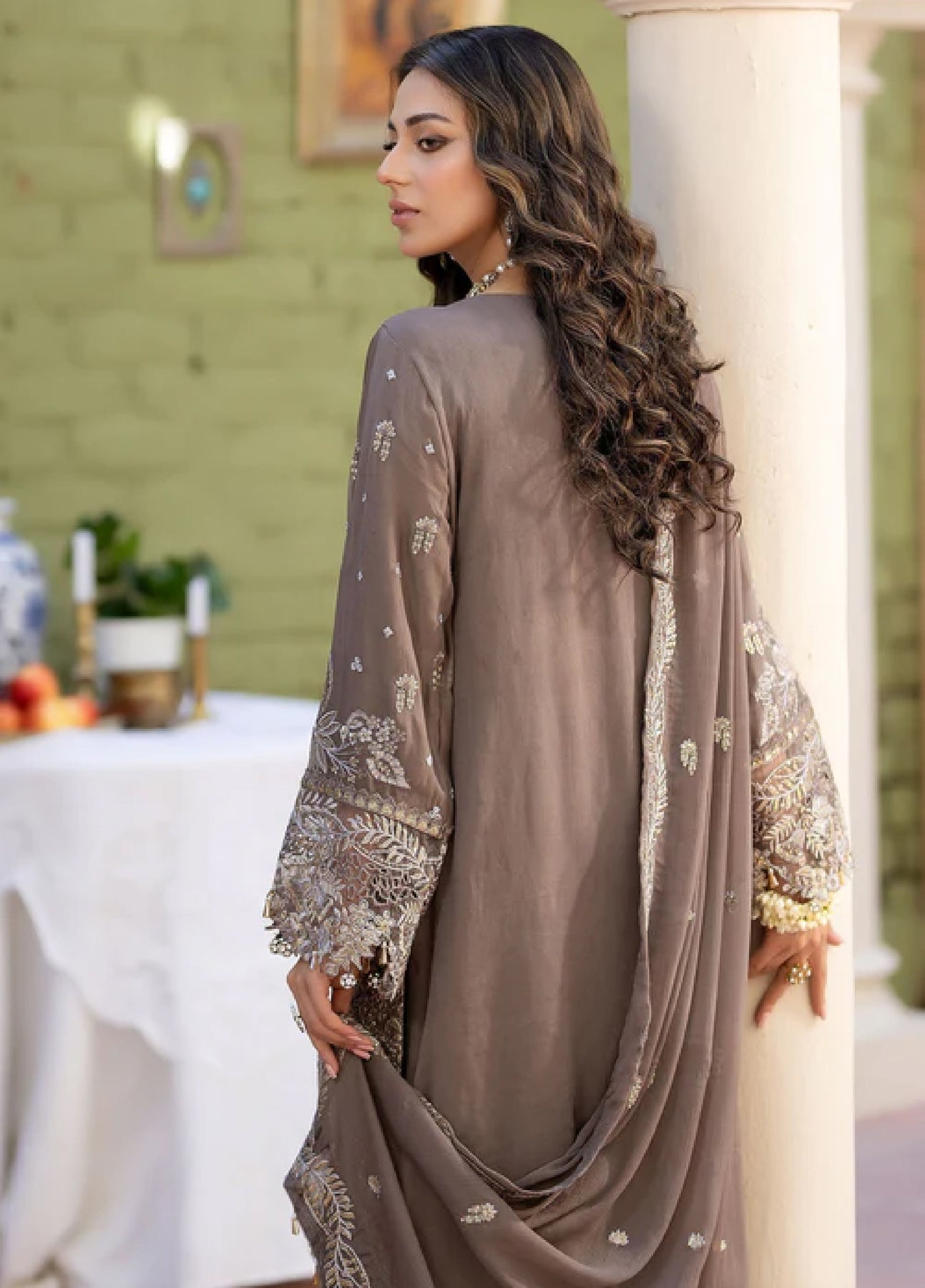This exquisite straight-cut shirt is crafted from embroidered chiffon and features fully adda work on the whole shirt. The sleeves are adorned with beautiful embroidery and an embroidered organza border at the opening. Complete with an embroidered chiffon dupatta featuring an embroidered silk border, and paired with a raw silk crush sharara, this ensemble is perfect for making a statement at any occasion. A stunning addition to your formal wardrobe, guaranteed to turn heads