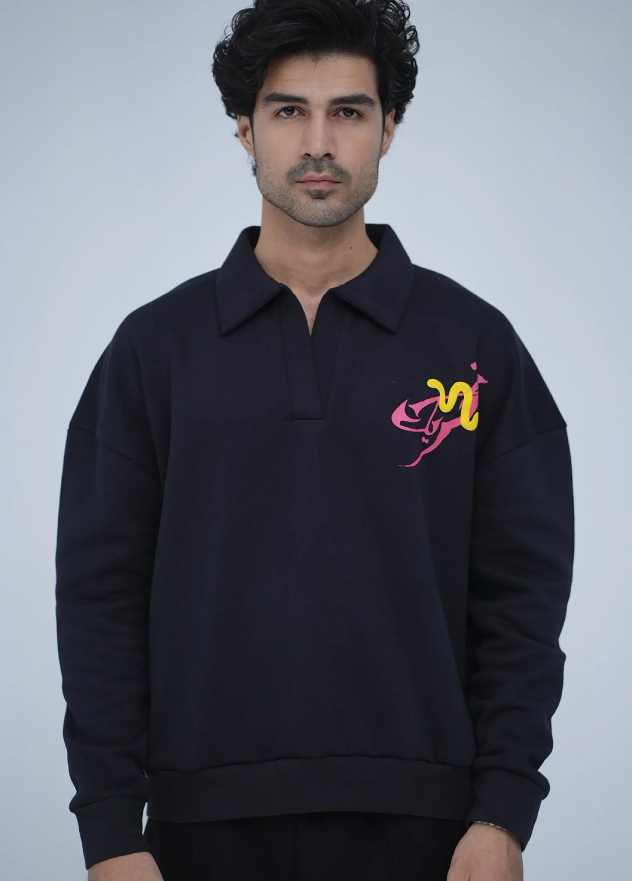 A deep indigo fleece with 70,000+ precision stitches, mixing embroidery and subtle print detailing for rich texture. Relaxed, warm, and made for cooler days β a premium cultural layer with elevated craft and everyday wearability.