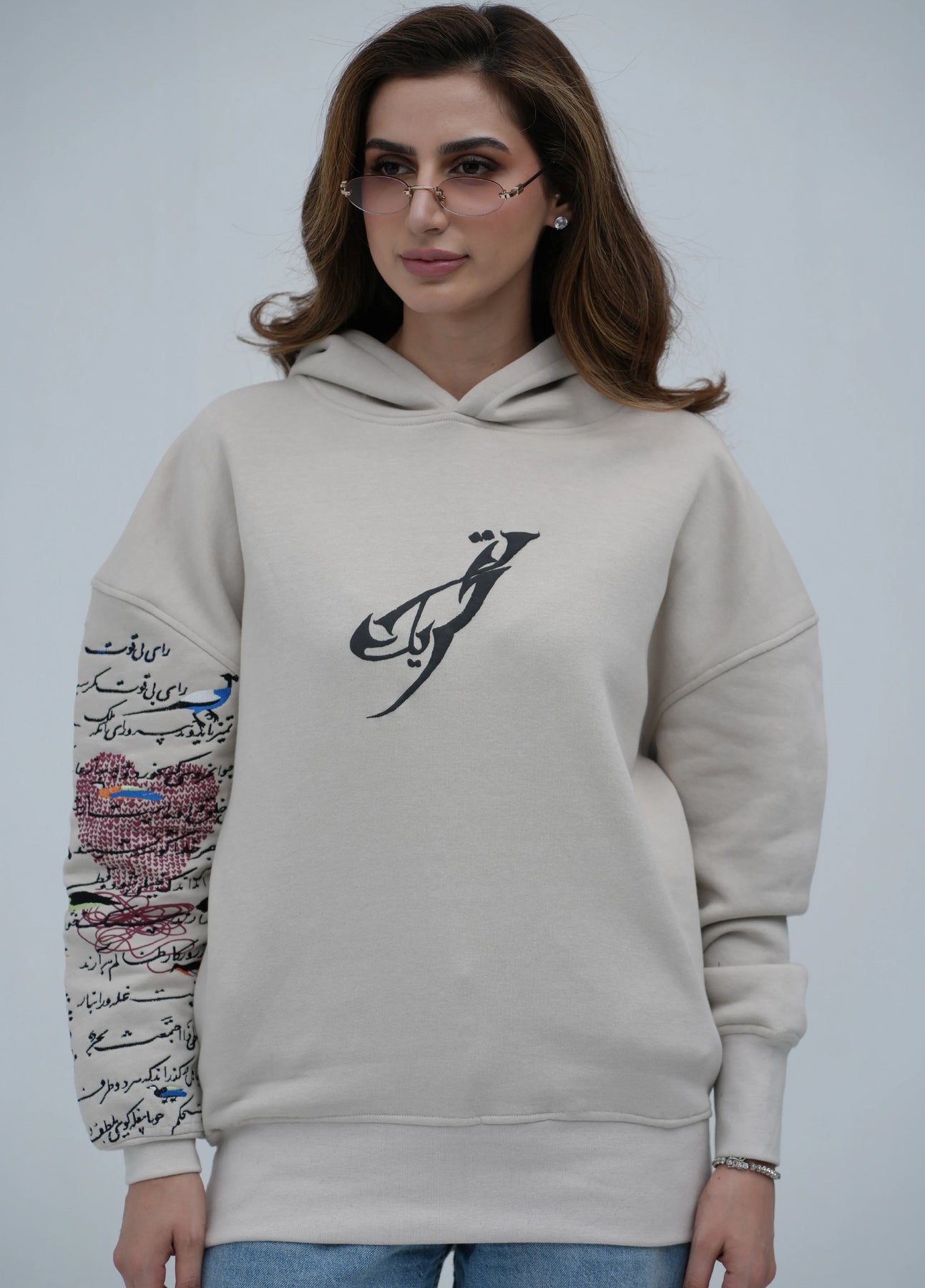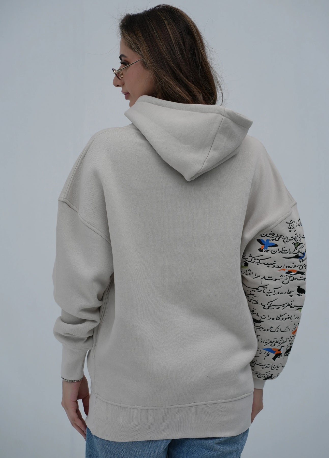 A mid-weight fleece piece with textured calligraphy on the chest and sleeve detailing for subtle personality. Soft on the inside with a relaxed structure, it adds cultural expression while staying minimal and versatile for seasonal layering.