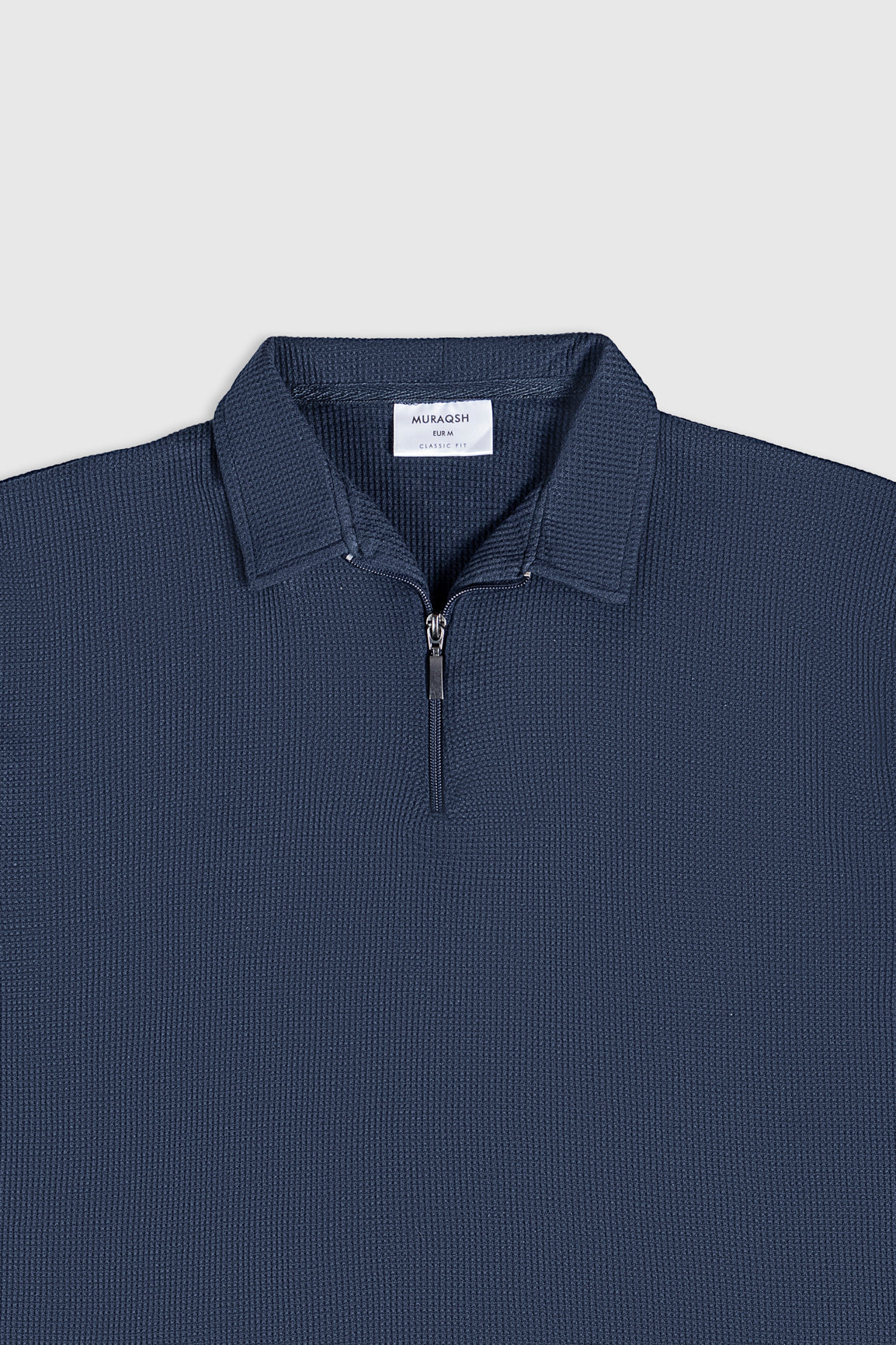 Make A Statement With This Deep Blue Oversized Waffle Zipper Polo. Textured, Bold, And Built For Breezy Summer Comfort.