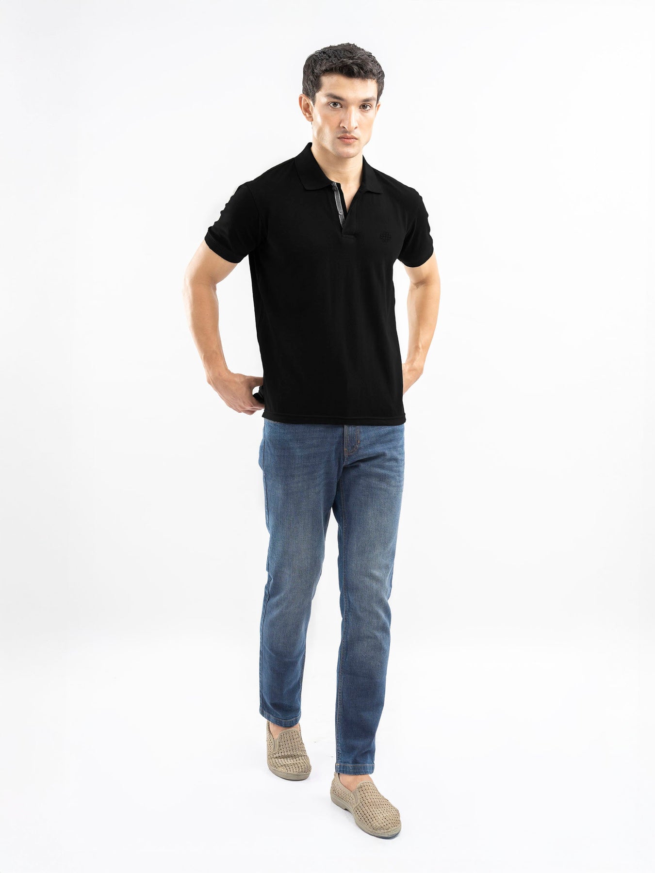 Upgrade your casual wardrobe with our mens black pique polo, crafted from 100% combed cotton for ultimate comfort. This versatile polo offers a timeless look, perfect for everyday use. Finished with ribbed collar & jacquard patterned front placket