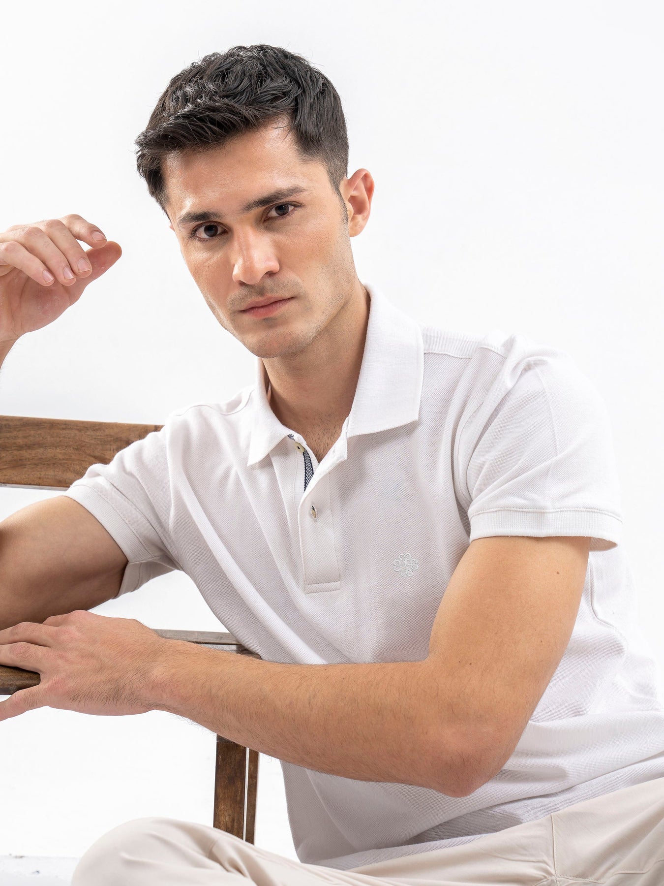 Upgrade your casual wardrobe with our mens white pique polo, crafted from 100% combed cotton for ultimate comfort. This versatile polo offers a timeless look with a rich mid-brown hue, perfect for any occasion. Finished with ribbed collar & jacquard patterned front placket