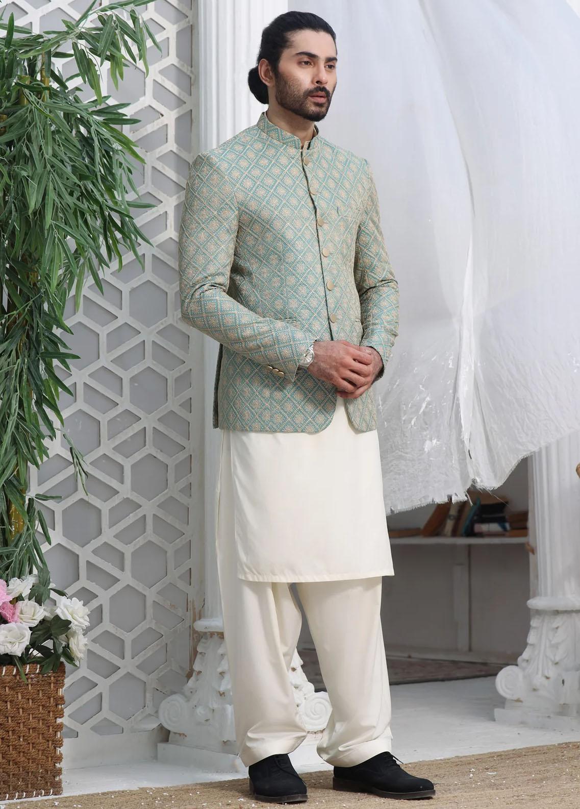 Mens Designer Prince Coat on Maesuri Fabric with Chikan Embroidery