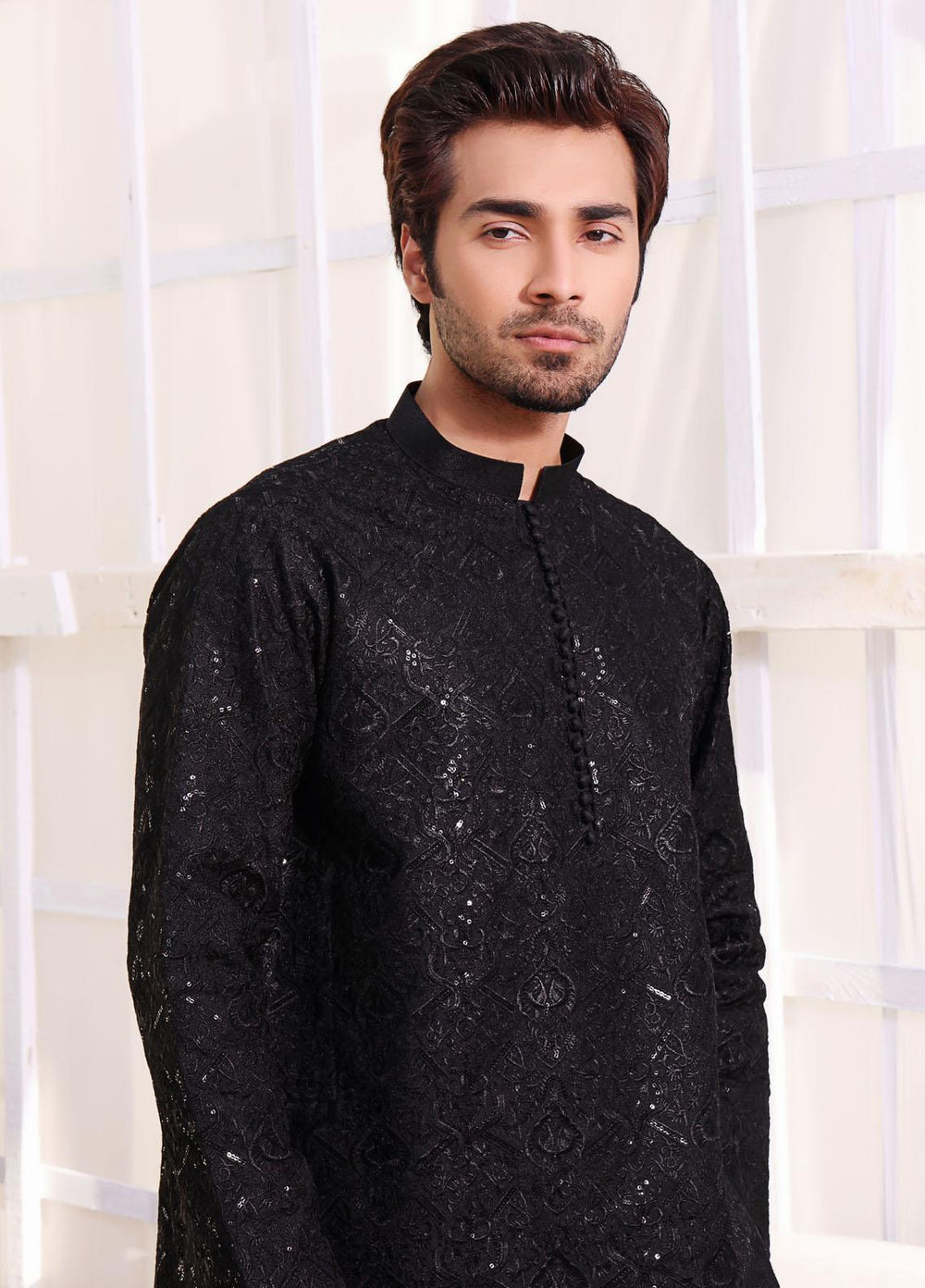 Mens Formal Kurta Pyjama On Zari Embroidery On Sequence Work
