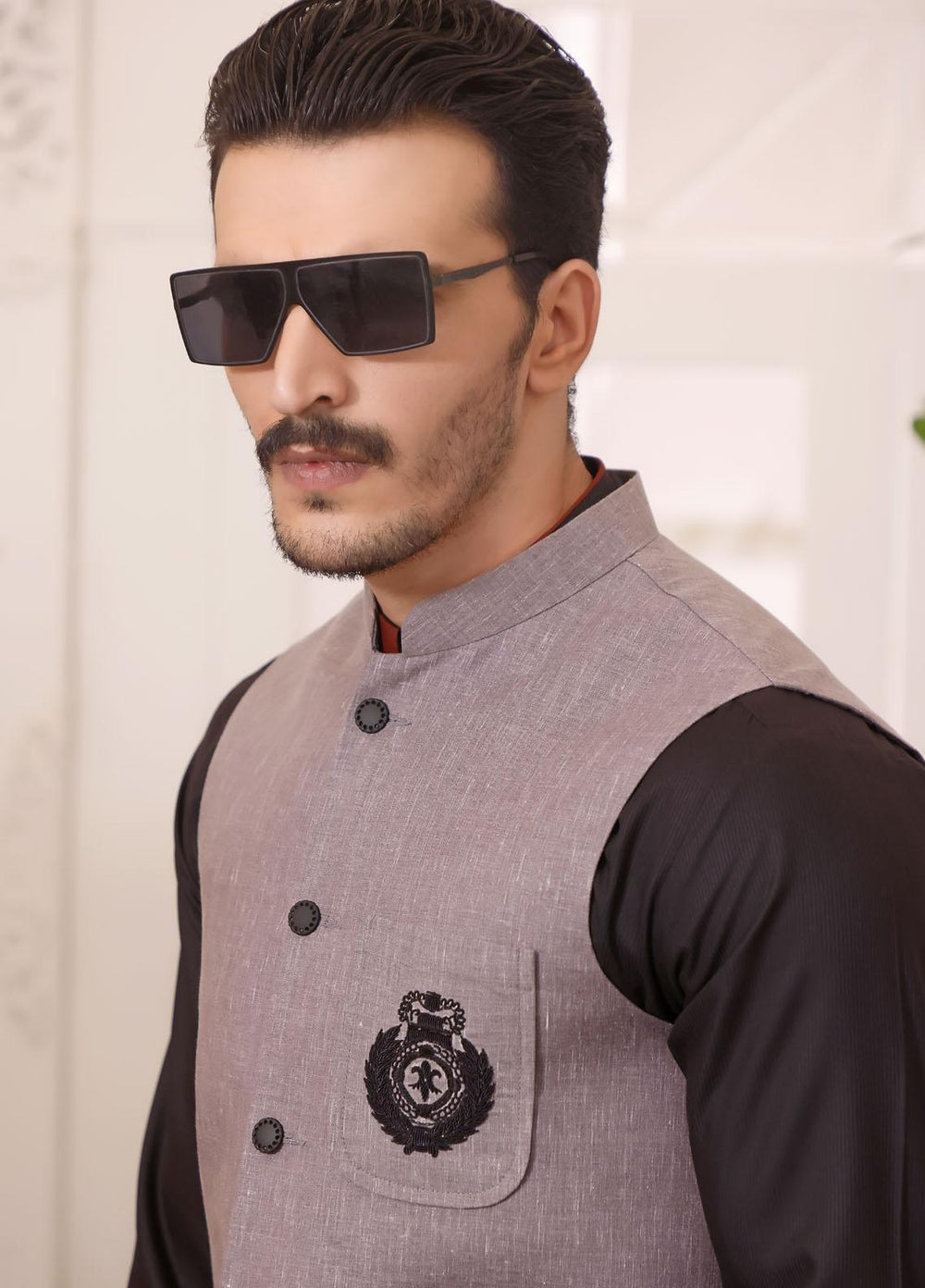 The Great Master (TGM) Wash N Wear Formal Men Kameez Shalwar with Waistcoat - TGM22MS Ash Gray