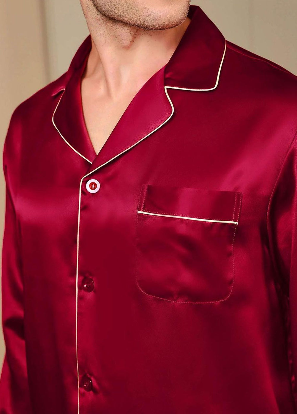 Our Mens Satin Full Sleeve Pajama Set is nicely tailored with a classic cut Made of 100 lightweight polyester fabric with a satin weave and silky feel these Mens pajamas feature one front pocket on the chest a comfortable elastic waistband
