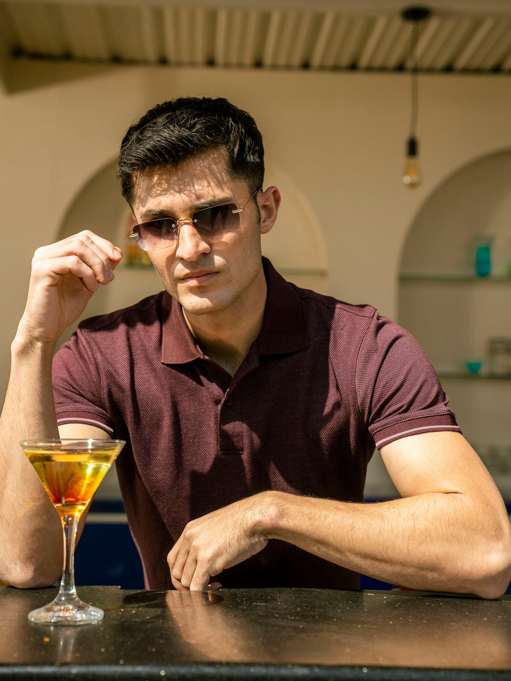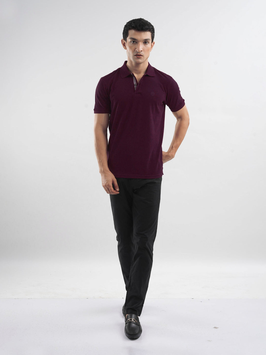 Brumano Solids Cotton Polo Burgundy Mao Collar Pique Polo