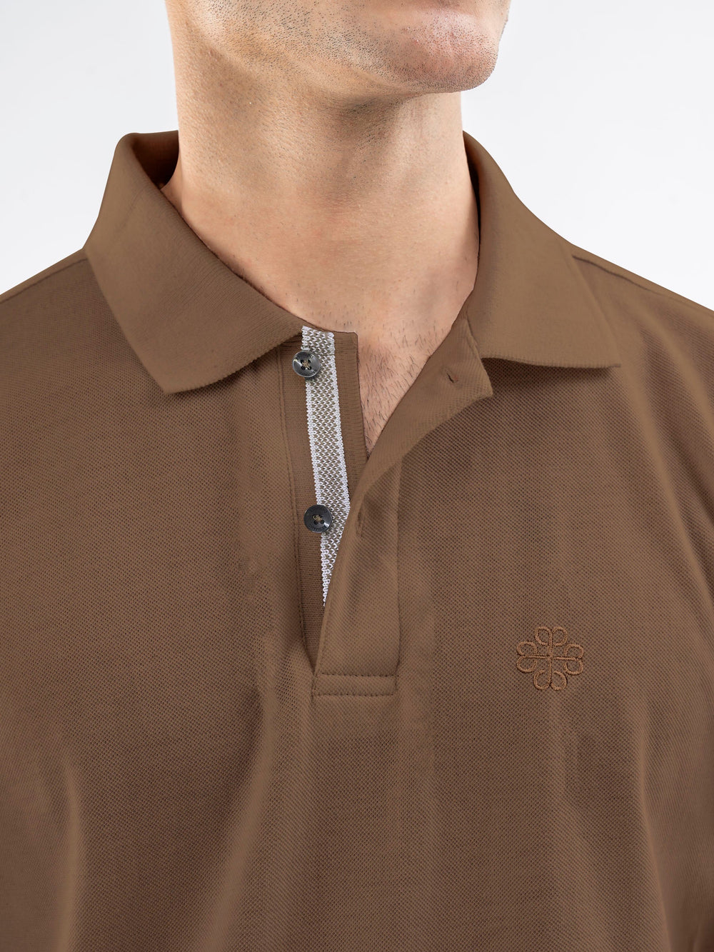 Brumano Solids Cotton Polo Mid Brown 100% Cotton Pique Polo