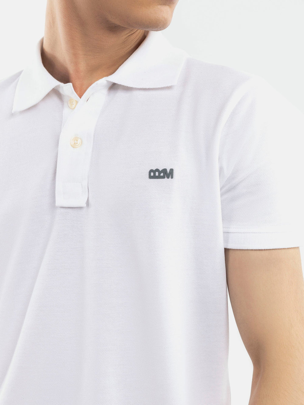 Brumano Solids Cotton Polo White Self Collar Polo With Contrasting Detailing