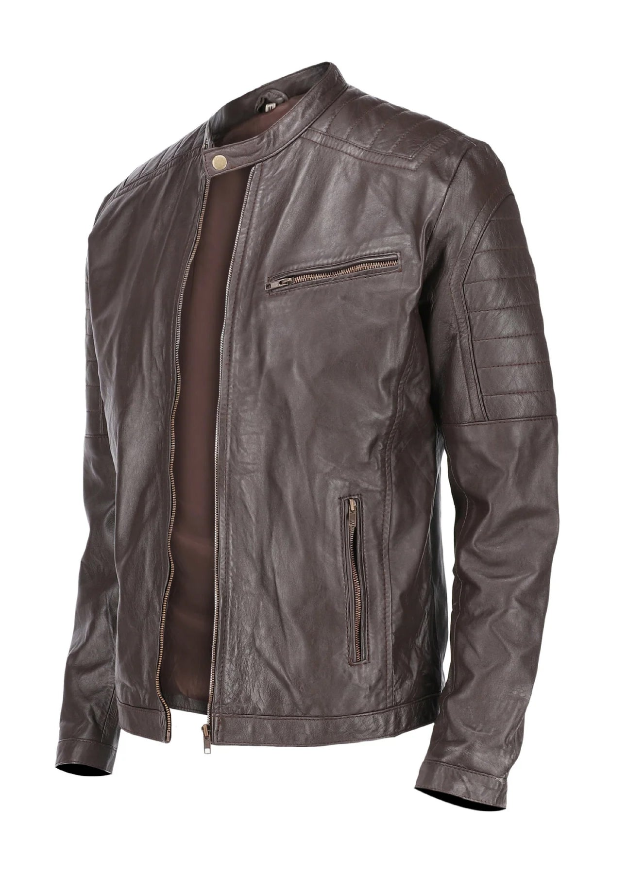 This Cafe Racer Black Mens Pure Sheep Leather Jacket is an ultimate trendy jacekt for Bikers . It comes with a simple and classy design and features, front zip fastener,front zipper pockets ,snap button collar, puffed shoulders and a modern fit.