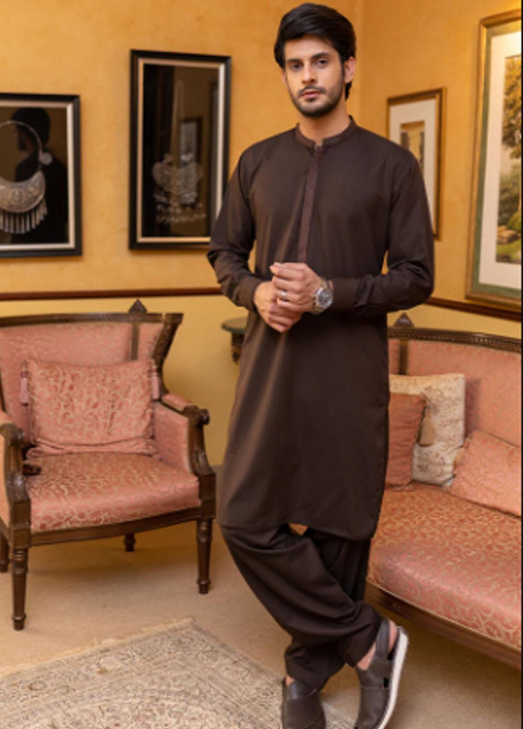 Stylish Wash N Wear Formal Kameez Shalwar for Men - TF-1060 Dark Brown