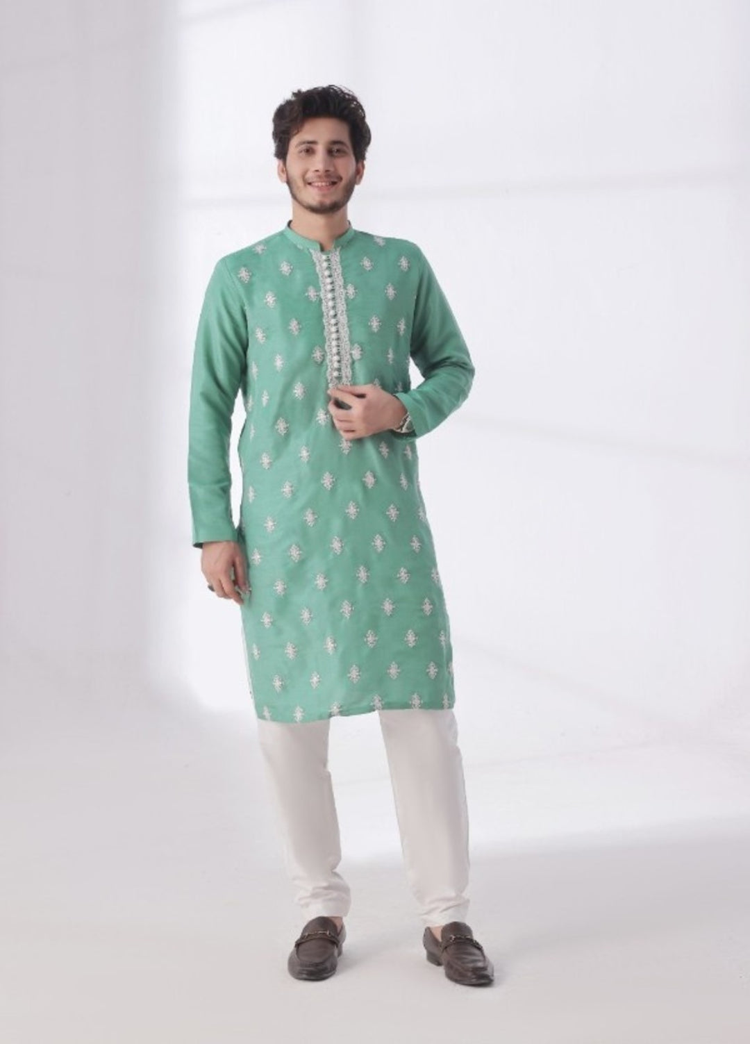 The Great Master (TGM) Chikan Fancy Men Kurta Pajama - Minty Marine