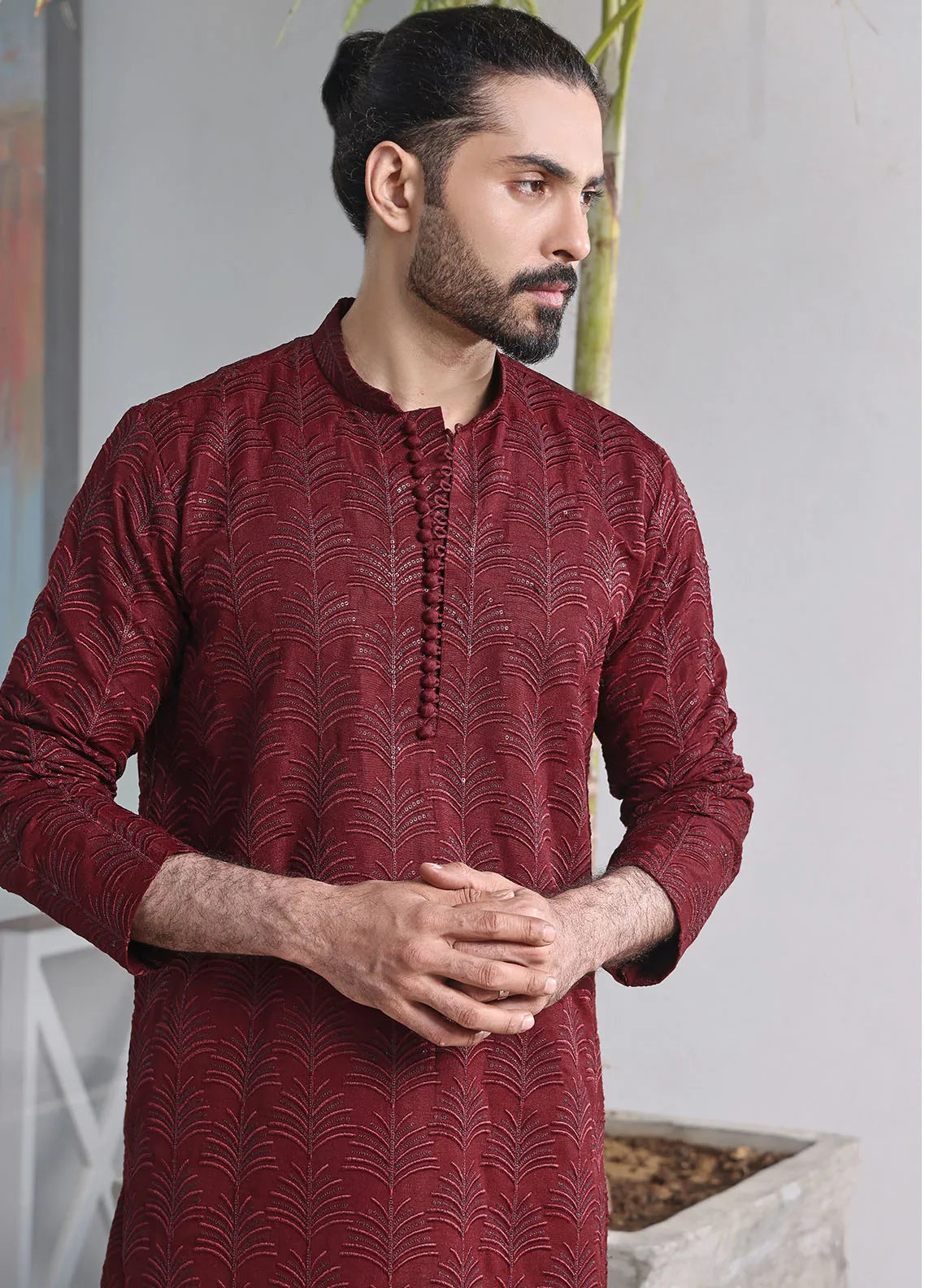 The Great Master (TGM) Raw Silk Fancy Men Kurta Pajama - Crimson Charm