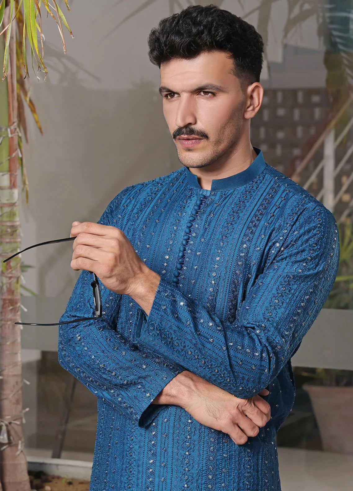 The Great Master (TGM) Raw Silk Fancy Men Kurta Pajama - Noble Blue