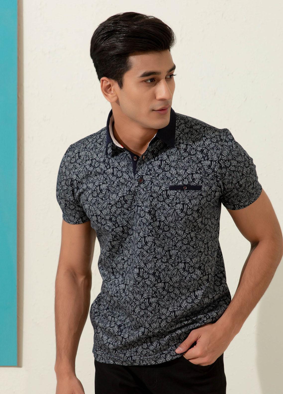 Buy Brumano Cotton Polo Men T-Shirts - Black Floral Printed Polo Shirt "from Sanaulla Online Store. We have complete Shirts Range of Brumano with us.