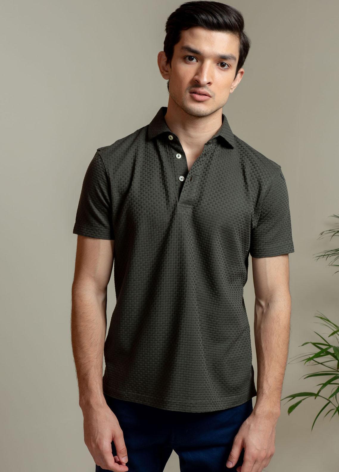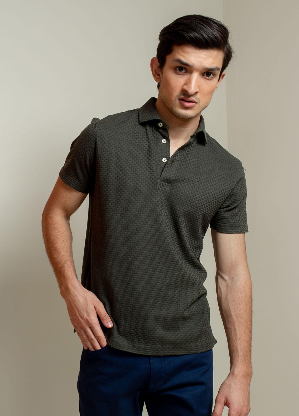 Buy Brumano Cotton Polo T-Shirts for Men - Olive Textured Polo With Classic Collar "from Sanaulla Online Store. We have complete Shirts Range of Brumano with us.