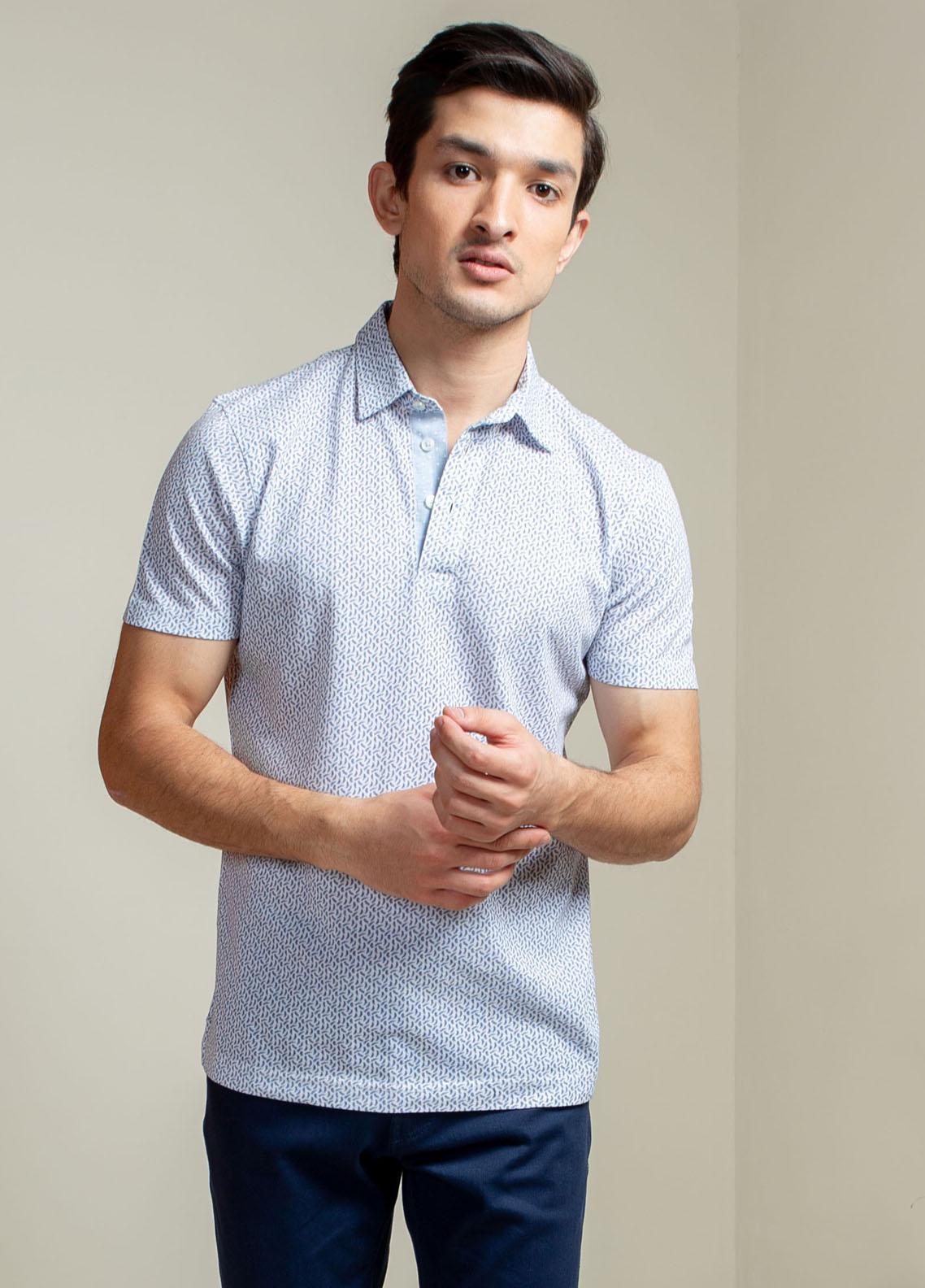 Buy Brumano Cotton Polo T-Shirts for Men - White & Blue Printed Mercerized Polo Shirt "from Sanaulla Online Store. We have complete Shirts Range of Brumano with us.
