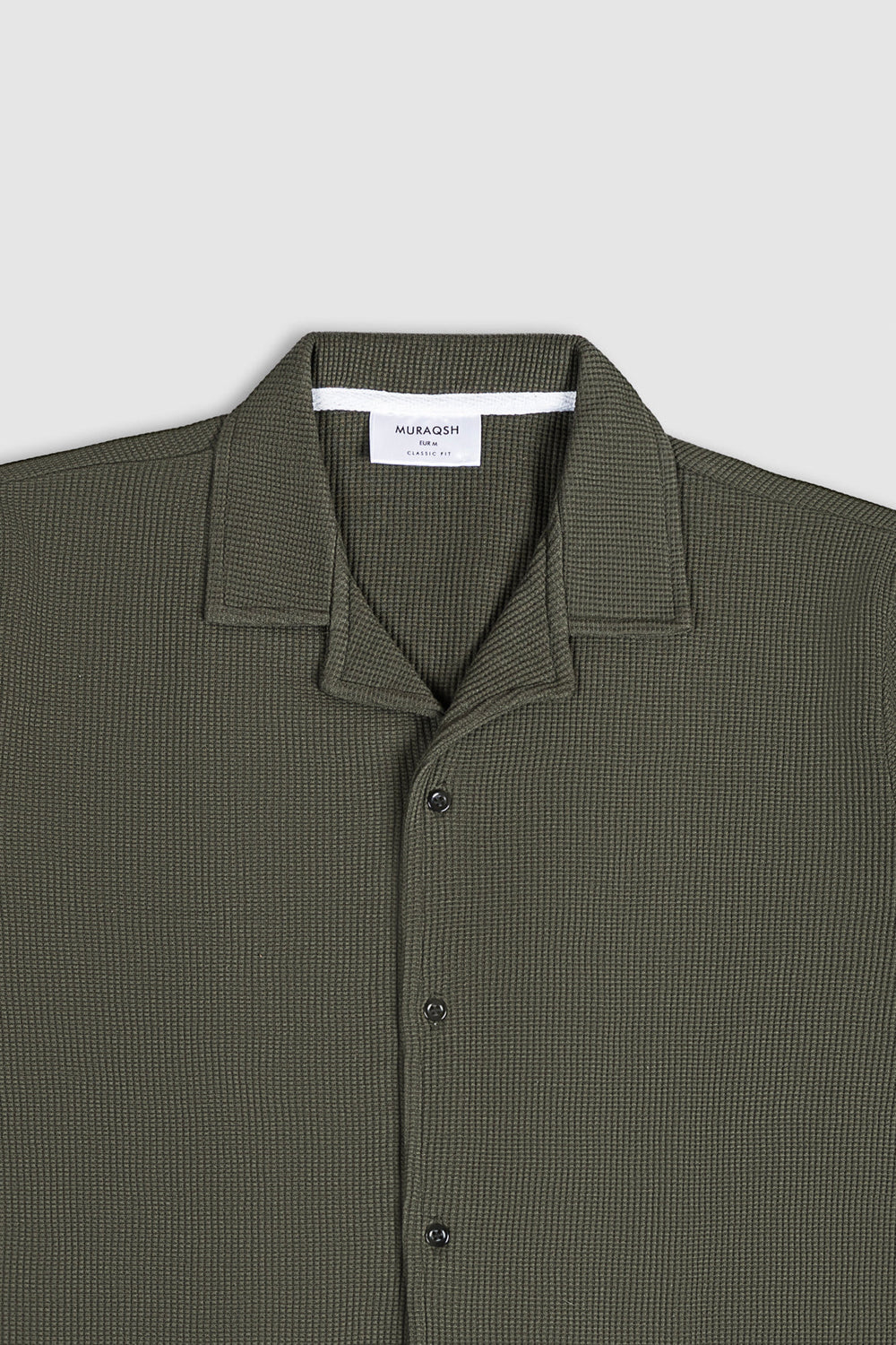 Muraqsh Ready To Wear Solids Waffle Men Olive Waffle Textured Revere Button Down ABD-OWTRBD-FS - Summer Collection