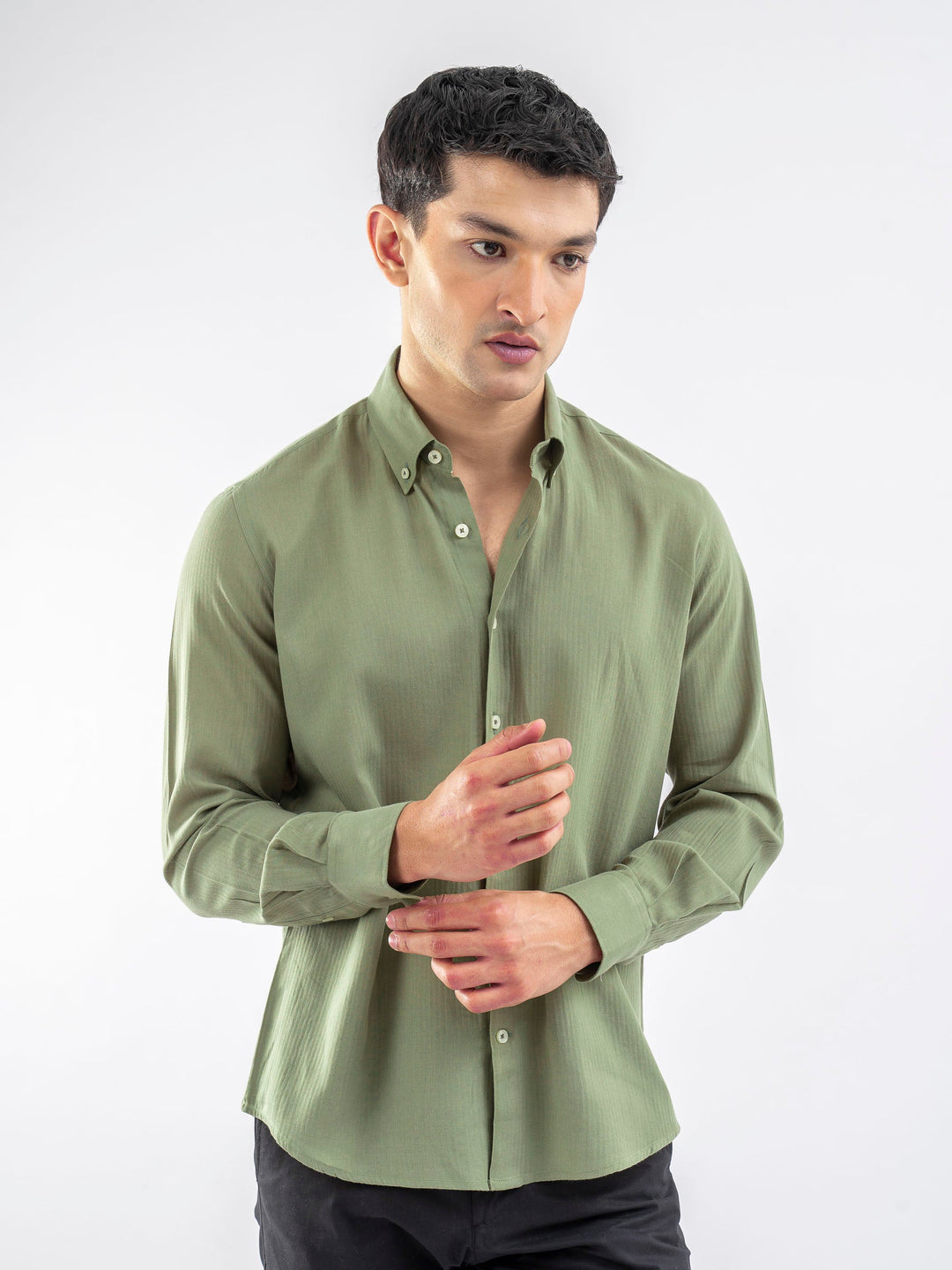 Muraqsh Ready To Wear Solids Poplin Men Olive Honeycomb Interlock Poplin Shirt ABD-OHIPS - Summer Collection