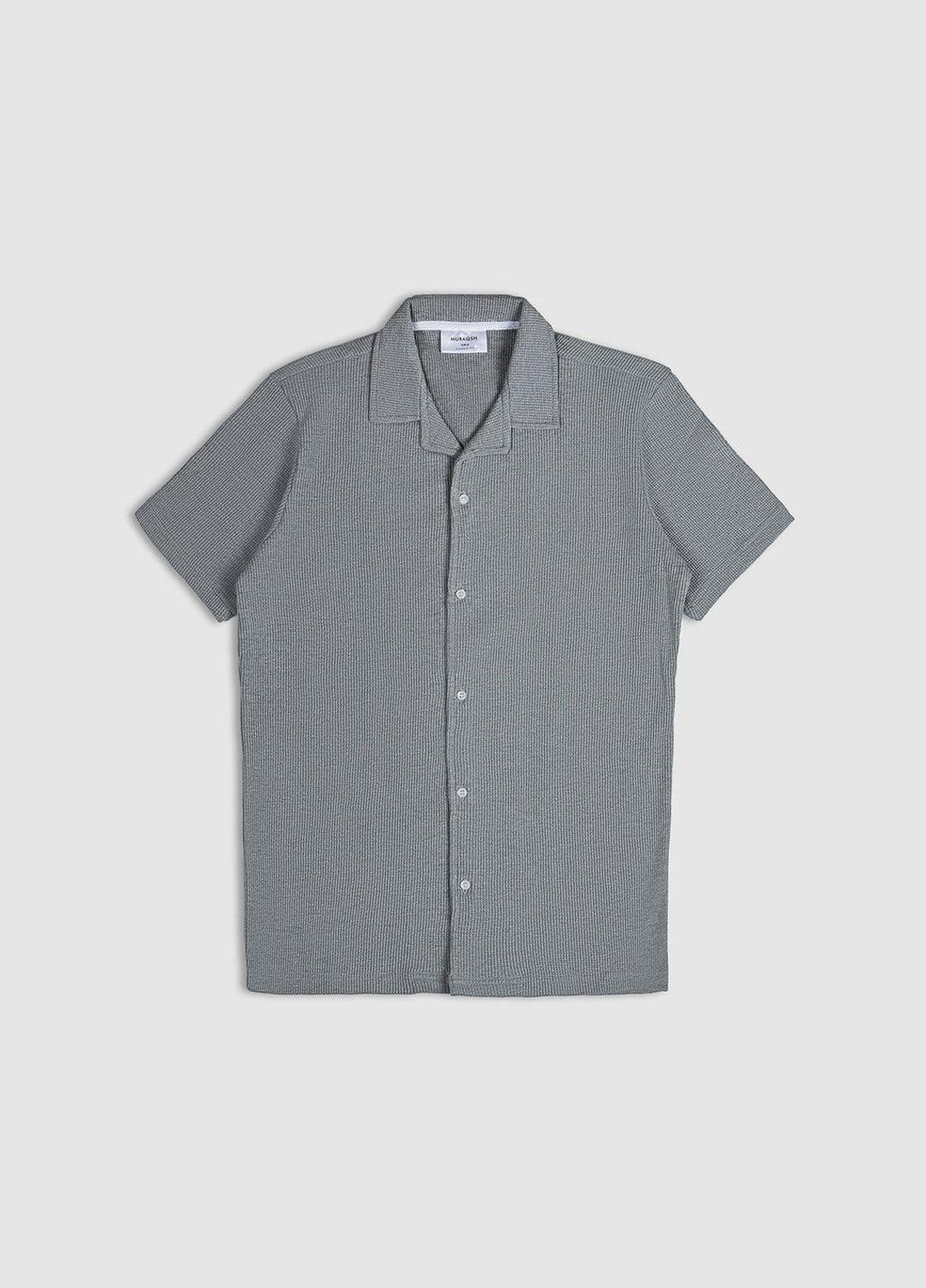 Muraqsh Ready To Wear Solids Cotton Men Light Grey Waffle Textured Revere Button Down ABDGWTRBD-FS - Summer Collection