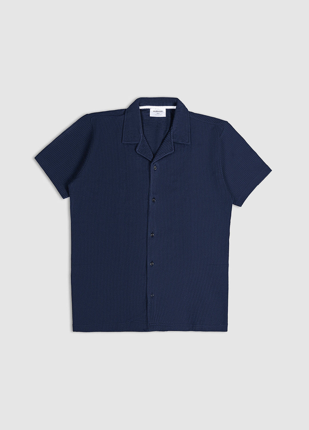 Muraqsh Ready To Wear Solids Cotton Men Navy Blue Drop Needle Revere Button Down ABD-NBDNRBD-FS - Summer Collection