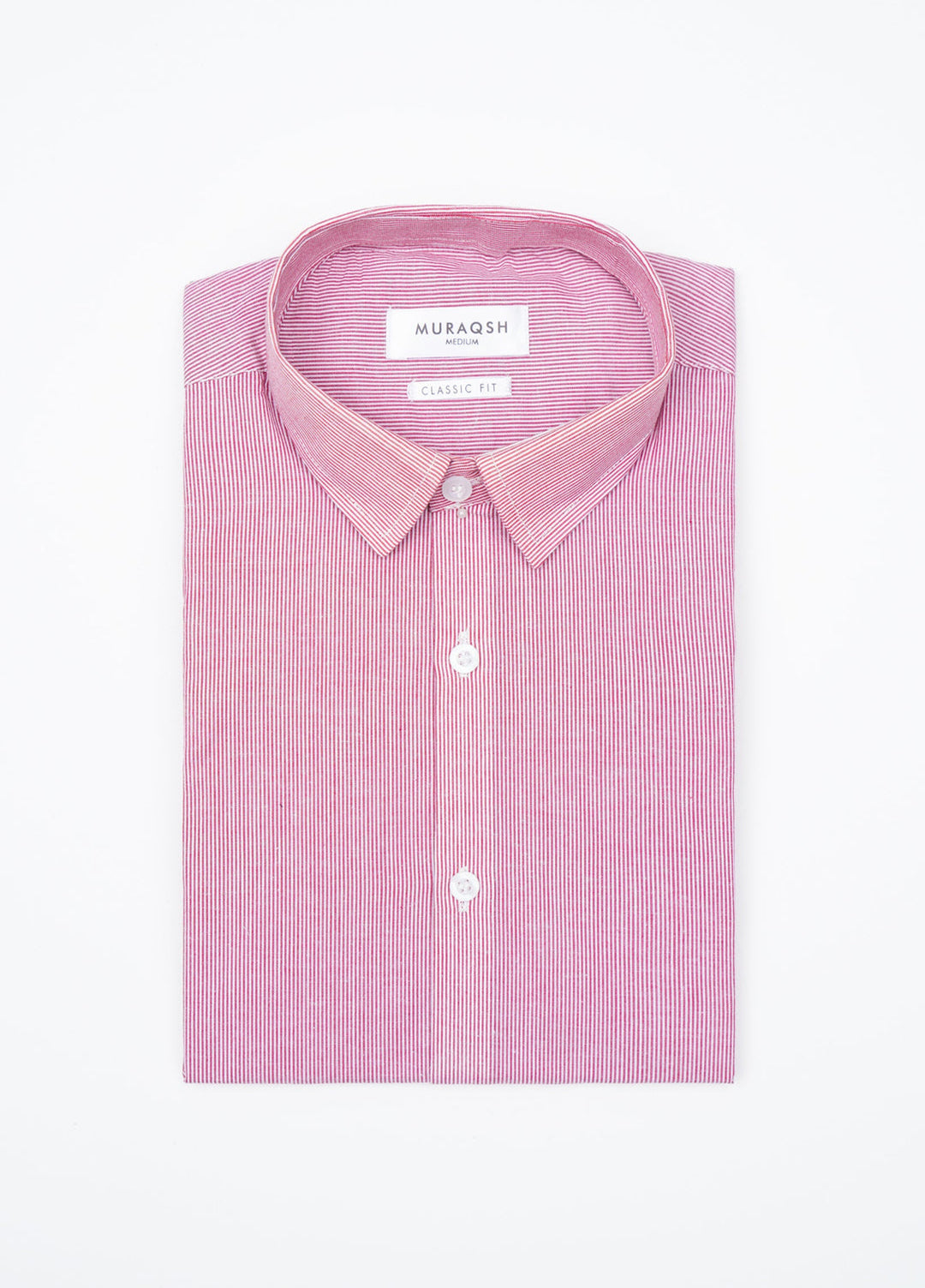 Muraqsh Ready To Wear Solids Cotton Men Red Striped Formal Shirt ABD-RSFS - Summer Collection