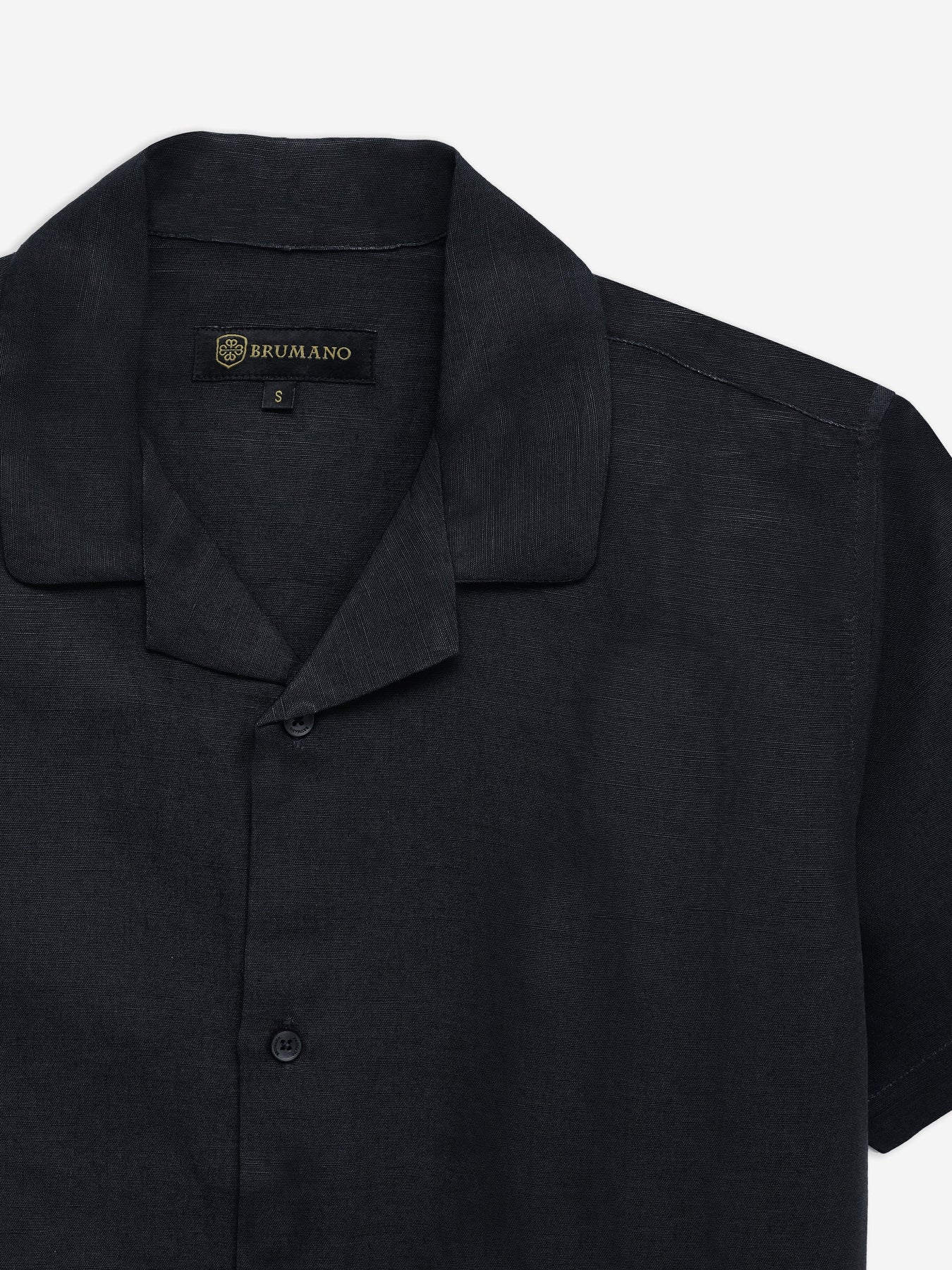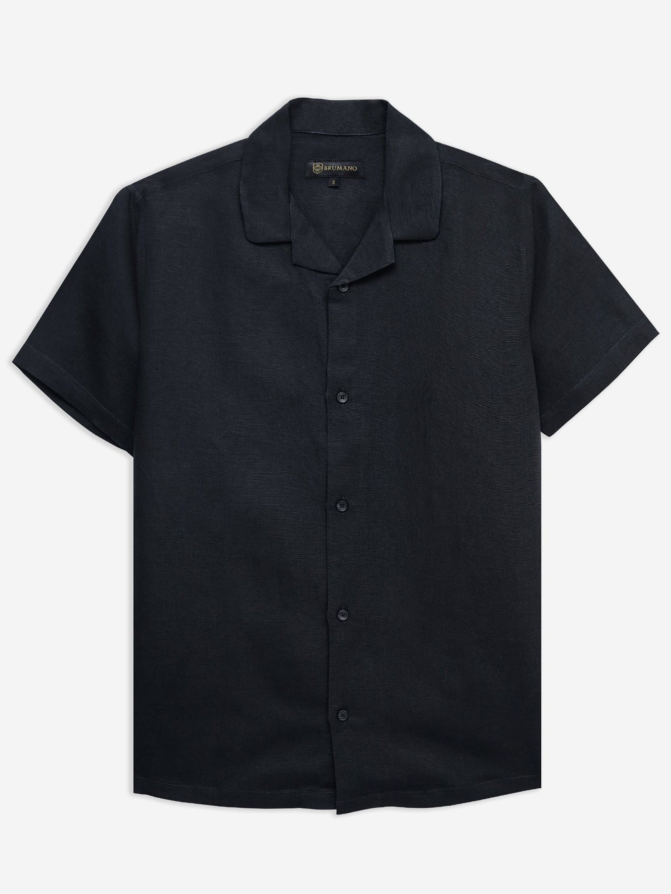 Elevate your style with this black linen & viscose blended cuban collar shirt. Crafted for comfort and breathability, it features a relaxed fit, soft texture, and a sleek Cuban collar for effortless sophistication—perfect for warm days or laid-back evenings.