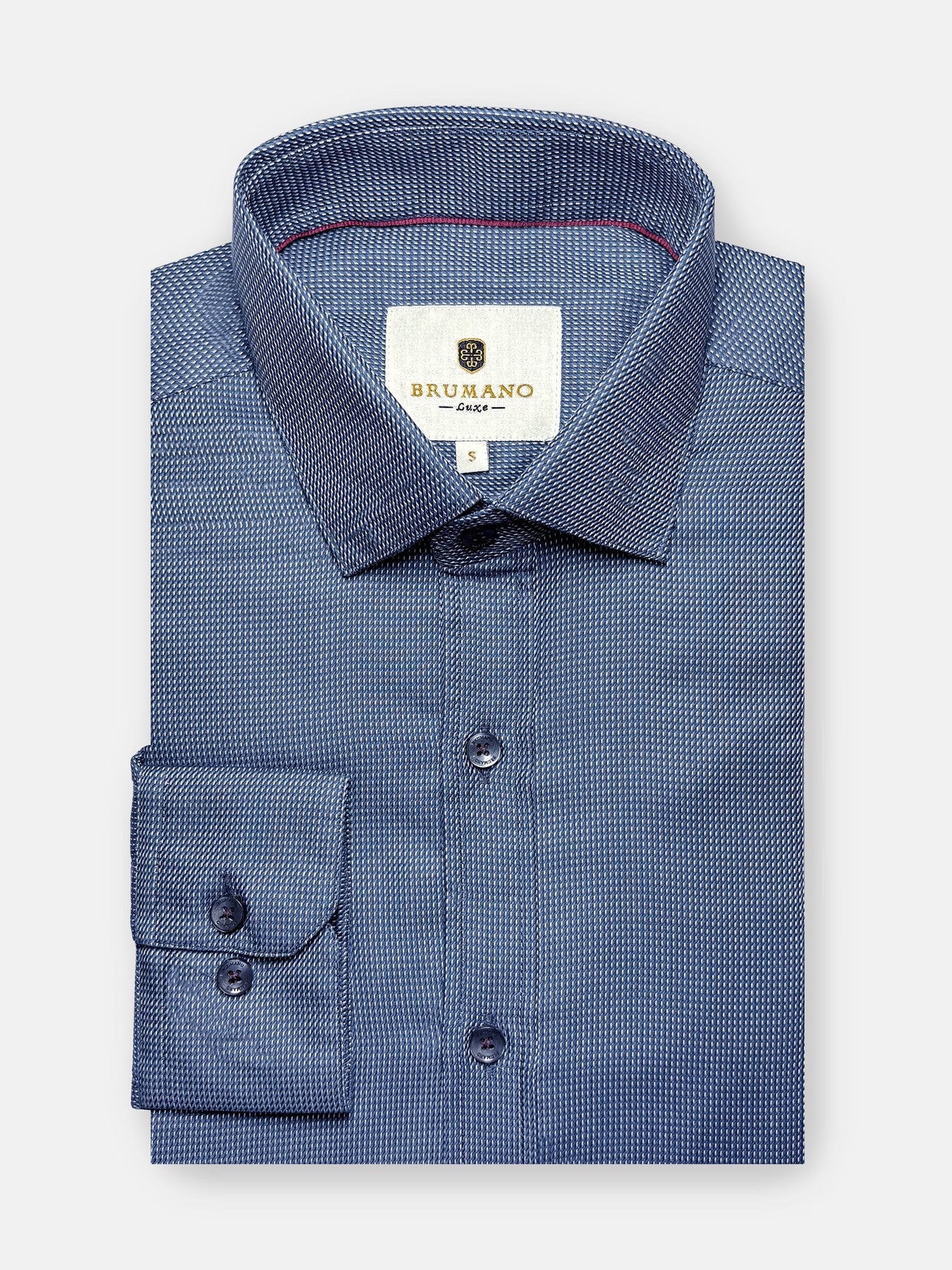 Brumano Ready To Wear Shirts Men 1 Piece Cotton Blue & Black Dobby Structured Shirt 0-32-025-4541 - Summer Collection