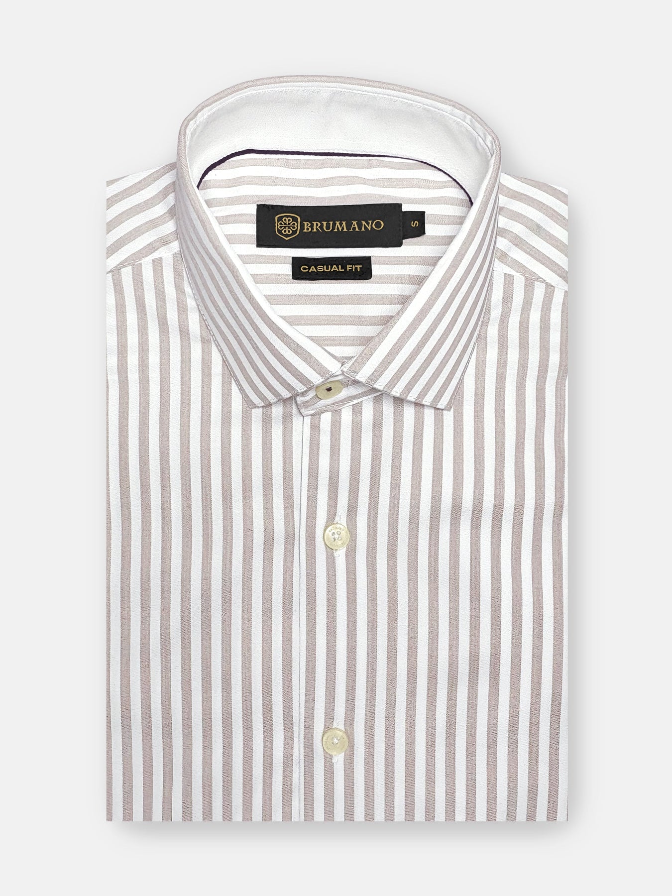 Brumano Ready To Wear Shirts Men 1 Piece Cotton Brown & White Bengal Striped Formal Shirt 0-31-025-4548 - Summer Collection