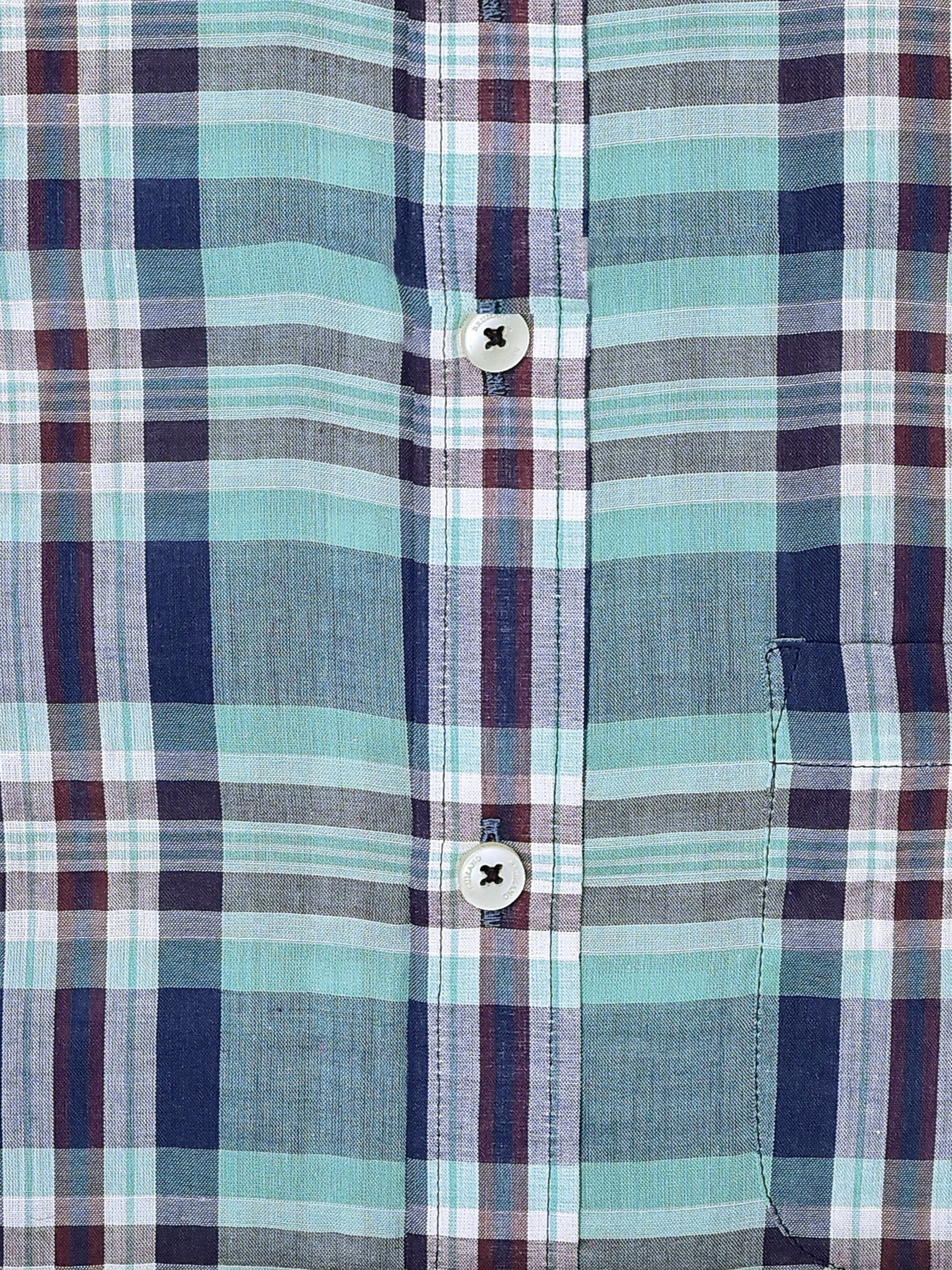 Brumano Ready To Wear Shirts Men 1 Piece Cotton Green Tartan Plaid Light Weight Seersucked Shirt 0-31-024-3325 - Summer Collection