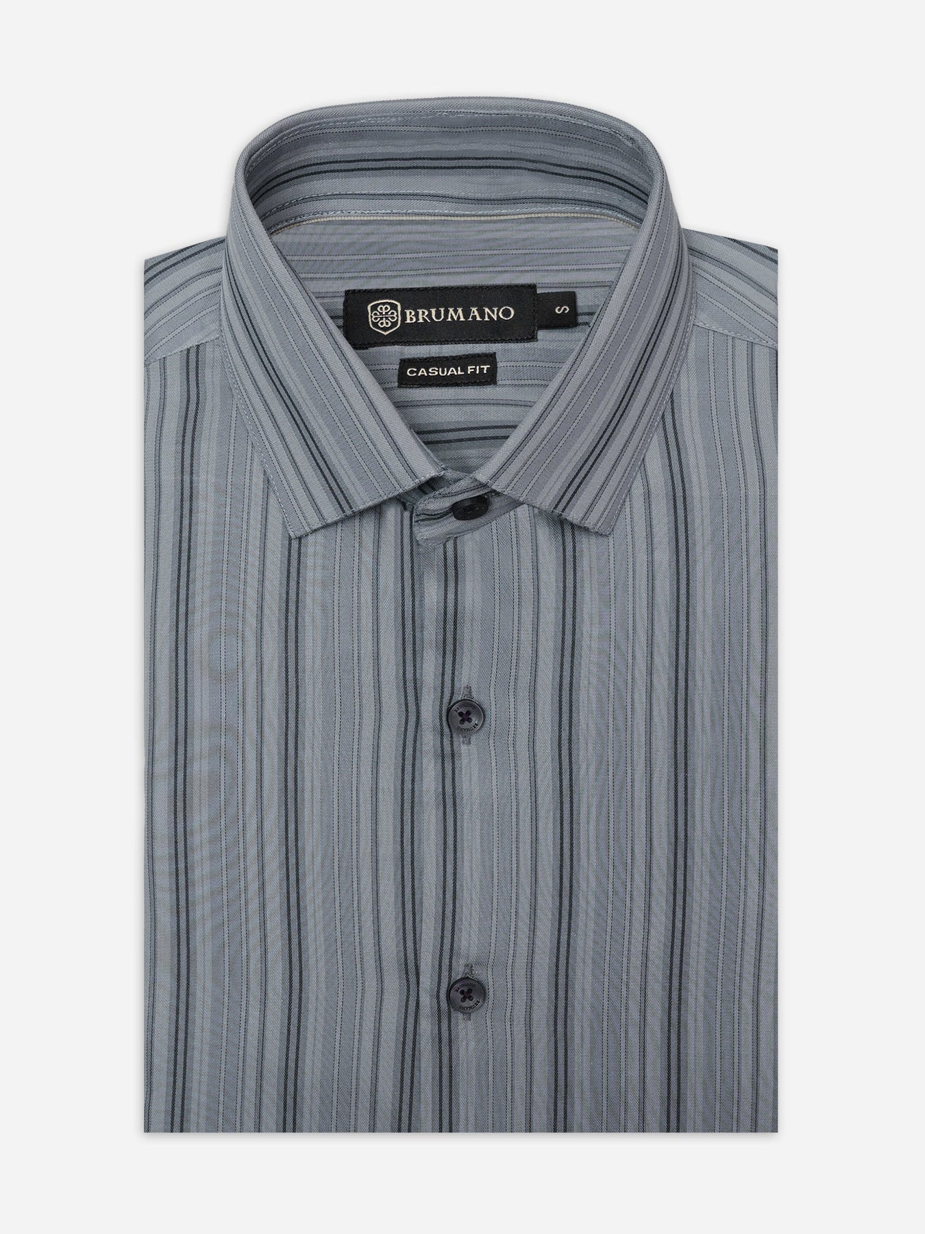 Brumano Ready To Wear Shirts Men 1 Piece Cotton Grey Striped Formal Shirt 0-31-025-4171 - Summer Collection