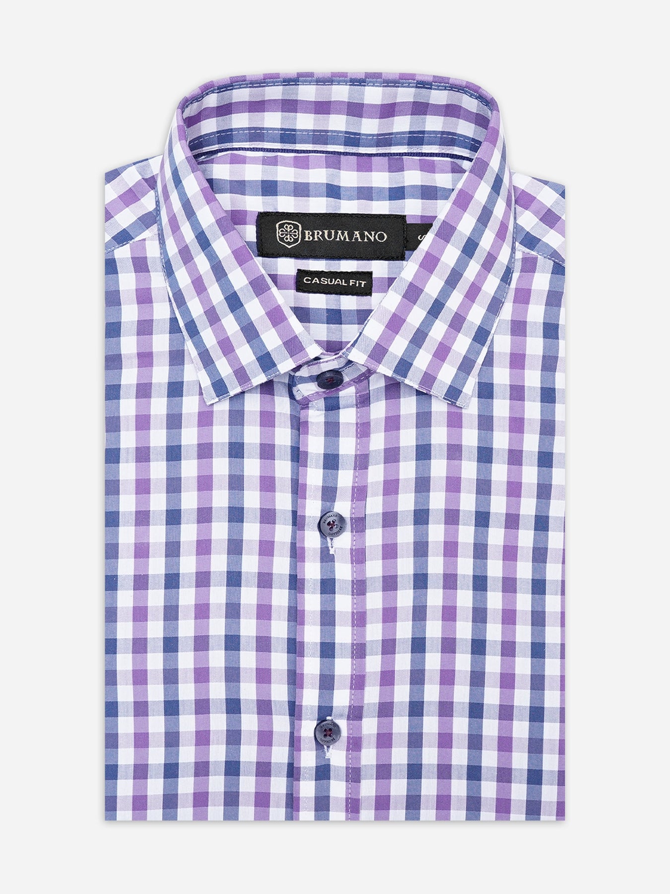 Brumano Ready To Wear Shirts Men 1 Piece Cotton Purple & Blue Gingham Formal Shirt 0-31-025-4533 - Summer Collection