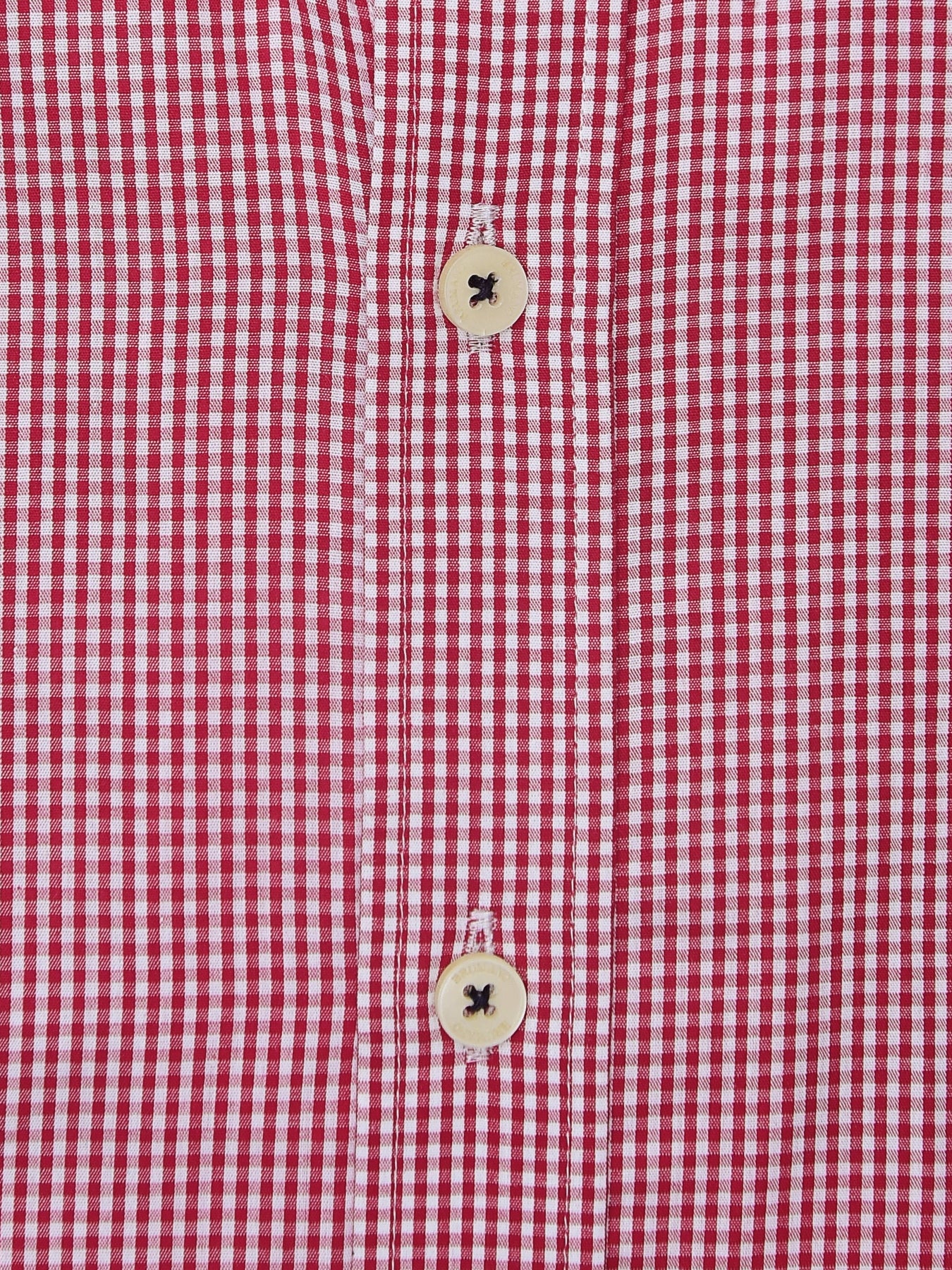 Elevate your smart casual ensemble with our mens red gingham button down shirt, boasting a refreshing light red color that exudes laid-back charm. Featuring a button-down collar, this shirt seamlessly blends casual comfort with polished style. Pair it with navy blue chinos for a perfect look