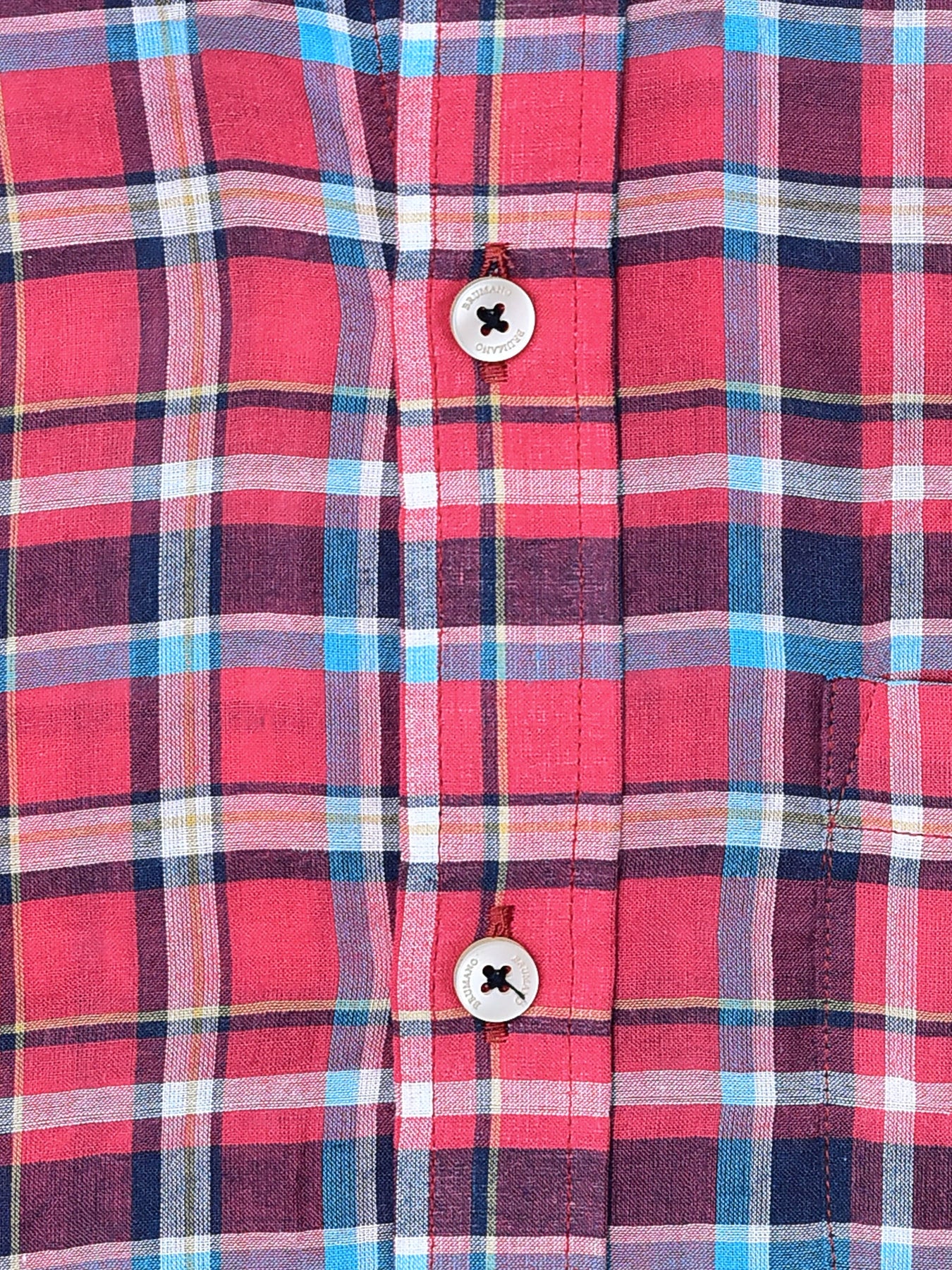 Brumano Ready To Wear Shirts Men 1 Piece Cotton Red Tartan Plaid Light Weight Seersucked Shirt 0-31-024-3339 - Summer Collection