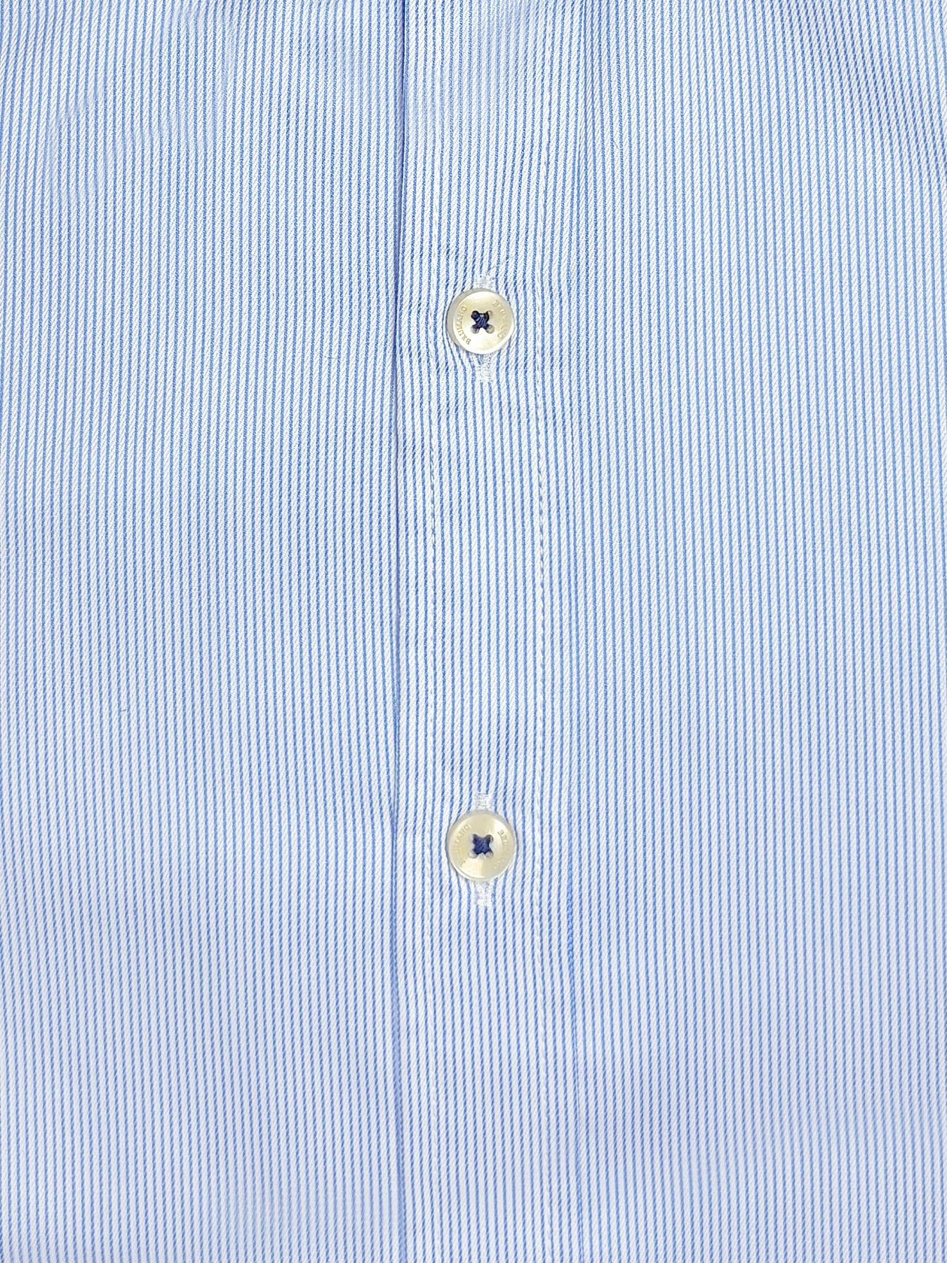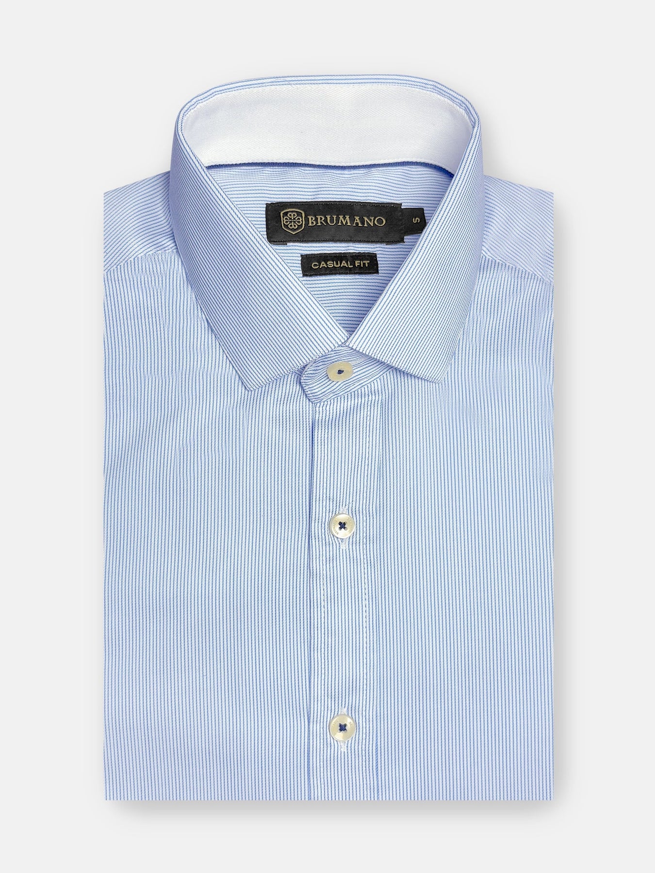 Elevate your formal wardrobe with this sky blue striped formal shirt. Featuring striped design in beautiful fabric. Finished with classic collar, inner collar detailing & branded buttons. Tailored for a polished look thatβs perfect for the office or special occasions.