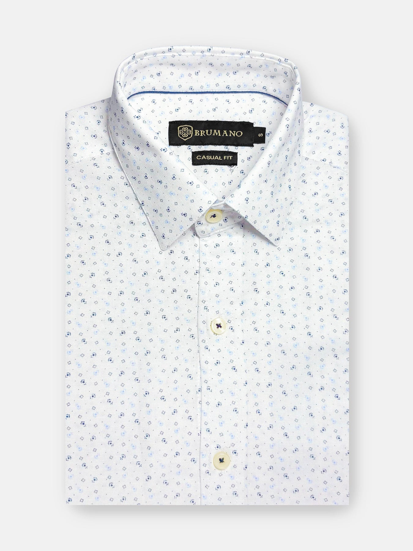 Brumano Ready To Wear Shirts Men 1 Piece Cotton White & Blue Printed Linen Shirt 0-31-025-3676 - Summer Collection