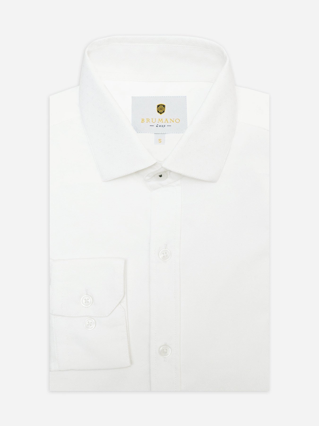 Brumano Ready To Wear Shirts Men 1 Piece Cotton White Dobby Structured Formal Shirt Luxe 0-32-025-4395 - Summer Collection