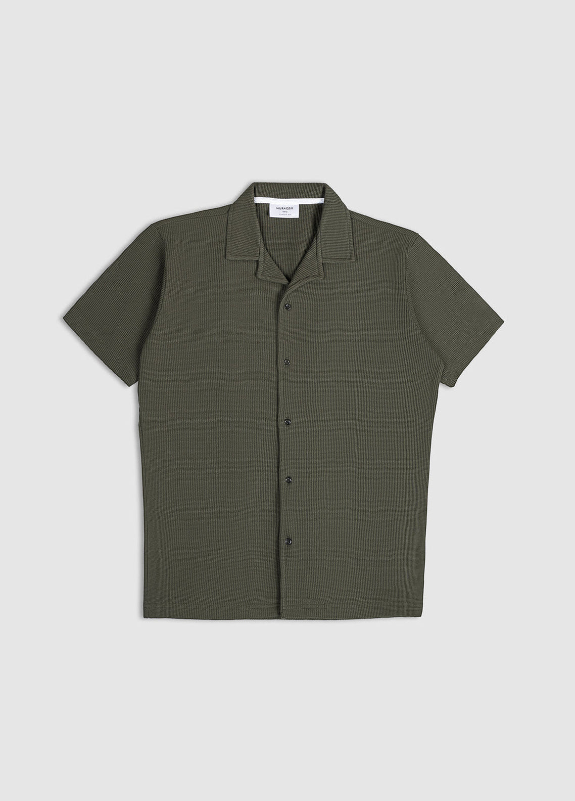 Olive Waffle Textured Revere Button-Down. Soft Fabric And Classic Collar. Ideal For A Stylish, Casual Look.