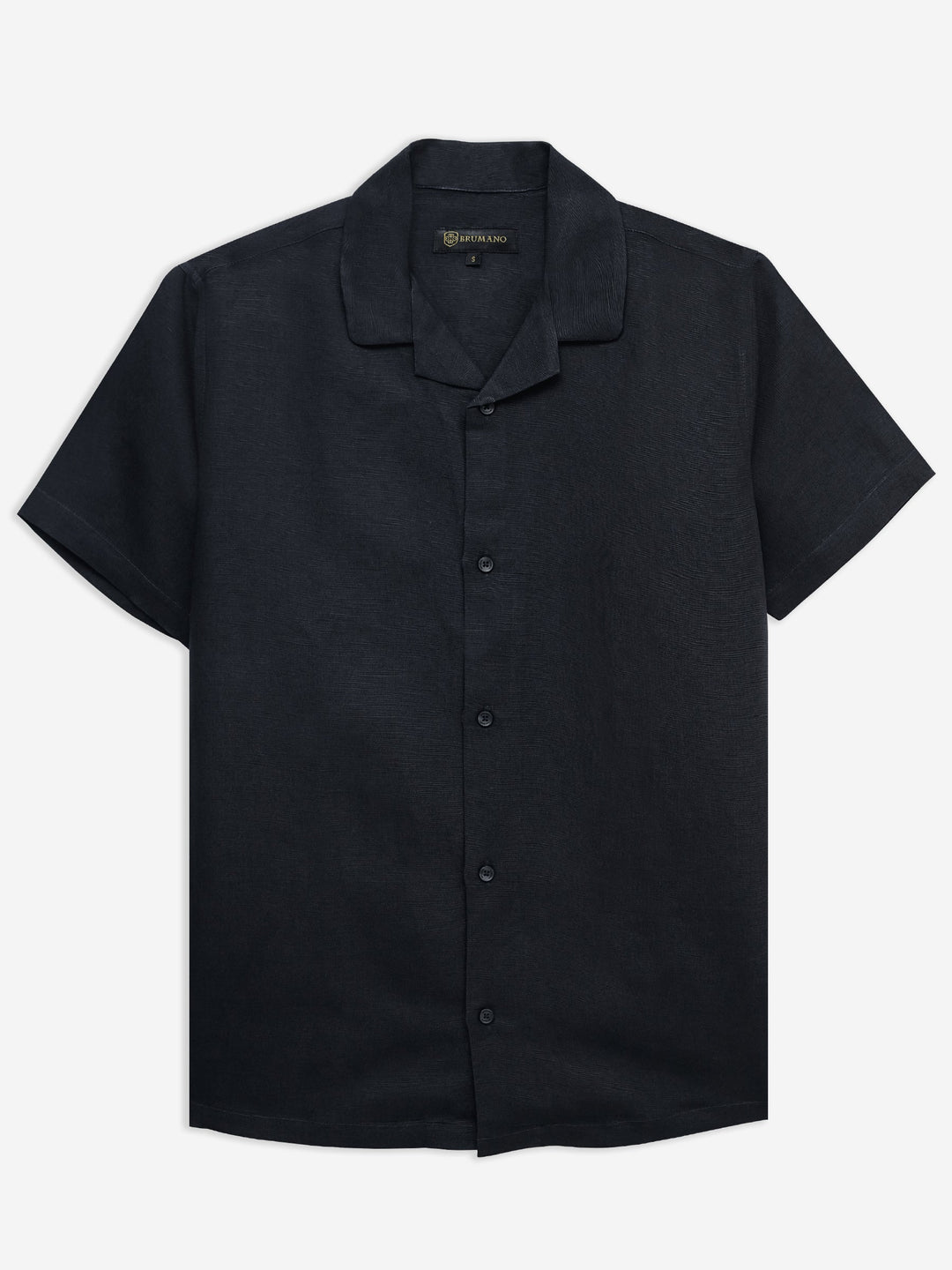 Brumano Ready To Wear Shirts Men 1 Piece Cotton Black Linen & Viscose Blended Cuban Collar Shirt 0-33-025-4708 - Summer Collection