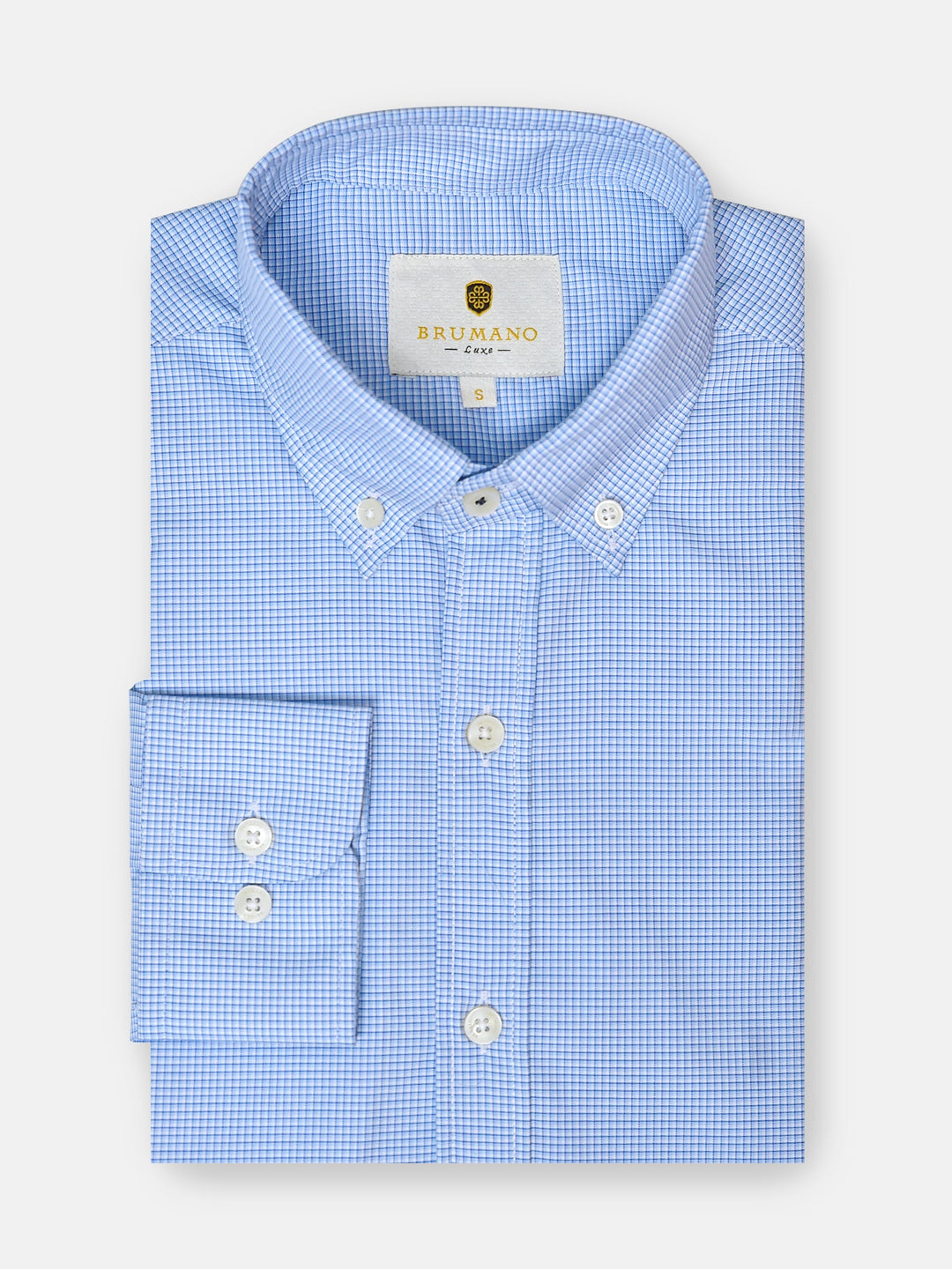 Brumano Ready To Wear Shirts Men 1 Piece Cotton Blue Micro Gingham Button Down Shirt Luxe 0-32-025-1120 - Summer Collection