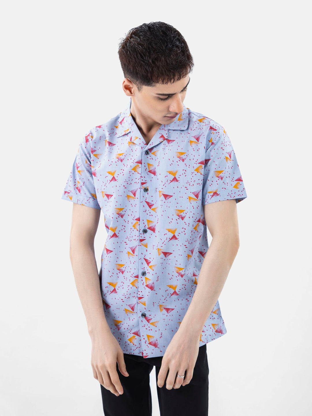 Brumano Ready To Wear Shirts Men 1 Piece Cotton Blue & Red Printed Half Sleeve Cuban Collar Shirt 0-33-024-3225 - Summer Collection